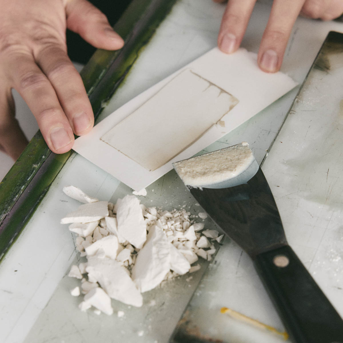 Charrière, bekannt für seine Expeditionen an die entlegensten Orte der Erde, hat für Ruinart unter anderem eine Serie von Fotolithografien geschaffen. Inspiriert von der geologischen Vergangenheit der Champagne, als die Region vor 45 Millionen Jahren noch vom Lutetischen Meer bedeckt war, verbindet er Geschichte mit Gegenwart. Die Arbeiten zeigen filigrane Korallenriffe, koloriert mit Pigmenten aus lokalem Kalkstein und gemahlenen Korallen – eine poetische Erinnerung an das, was war, und an das, was es zu bewahren gilt.