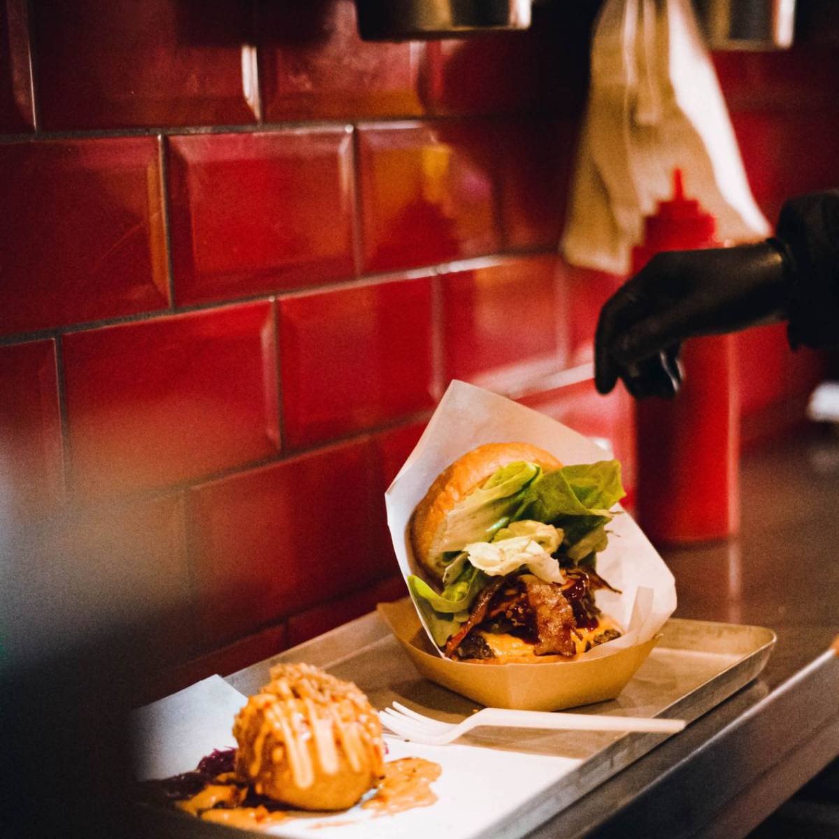 Wir bestellen am stylischen Imbiss-Fenster – natürlich zum Mitnehmen – und werden prompt bedient. Erwähnt werden sollte an dieser Stelle, dass es auch unter anderen Umständen keine Sitzmöglichkeiten vor Ort gibt. Macht aber nichts, dafür schmeckt's bei Son Kitchen einfach super.