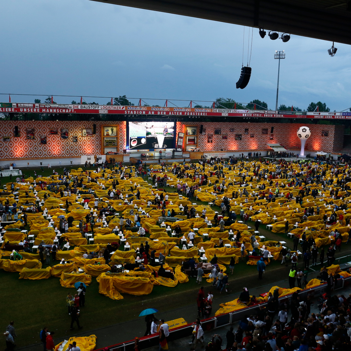 Und so liebt man auch den Anachronismus, dass der Spielstand im Stadion An der Alten Försterei noch immer manuell über Steckschilder angezeigt wird. Längst steht das Stadion für eine Reihe weiterer öffentlicher wie privater Veranstaltungen zur Verfügung, wie Rockkonzerte oder das beliebte WM-Wohnzimmer während der Fußball-Weltmeisterschaft 2014.