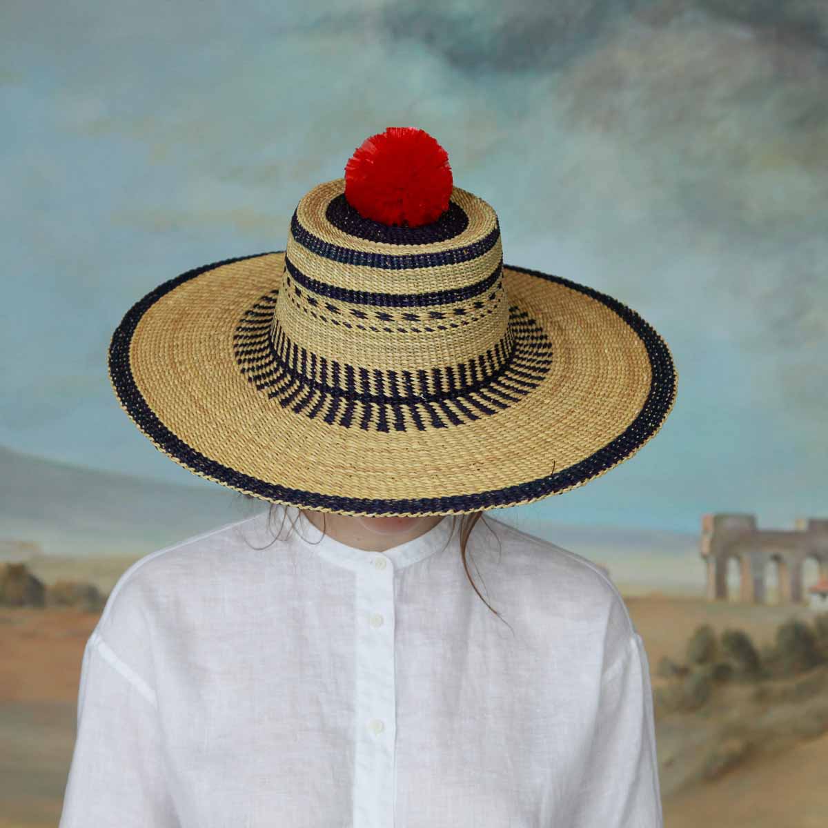 Die auf 60 Hüte limitierte Edition wurde aus Kinkanhe-Gras handgeflochten und mit natürlichen Farben gefärbt. Auch dadurch erhalten sie ihren ganz besonderen Charme. Und ganz nebenbei unterstützt die Produktion auch direkt die Entwicklung und Bildungseinrichtungen der ghanaischen Gemeinde und hilft den Frauen, ihre Familien zu ernähren. So bringt Fiona Bennett gekonnt sommerliche Eleganz mit einem Hilfsprojekt zusammen.
