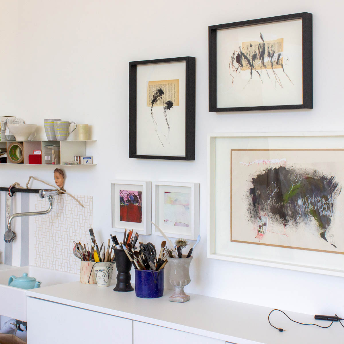 Es ist ein warmer Sommertag, als wir Susanne Winkler in ihrem Haus mit atemberaubenden Garten im Süden Berlins besuchen. Gemeinsam mit ihrem Mann betreibt sie dort ein Architekturbüro. Ein Umstand, der sich durch viele schöne Details am Haus zeigt. Was jedoch am meisten heraussticht, als wir uns im Wintergarten niederlassen, sind die vielen Malereien, Zeichnungen und Skulpturen, mal bunt, mal schlicht, die Wände, Tische und Regale zieren.
