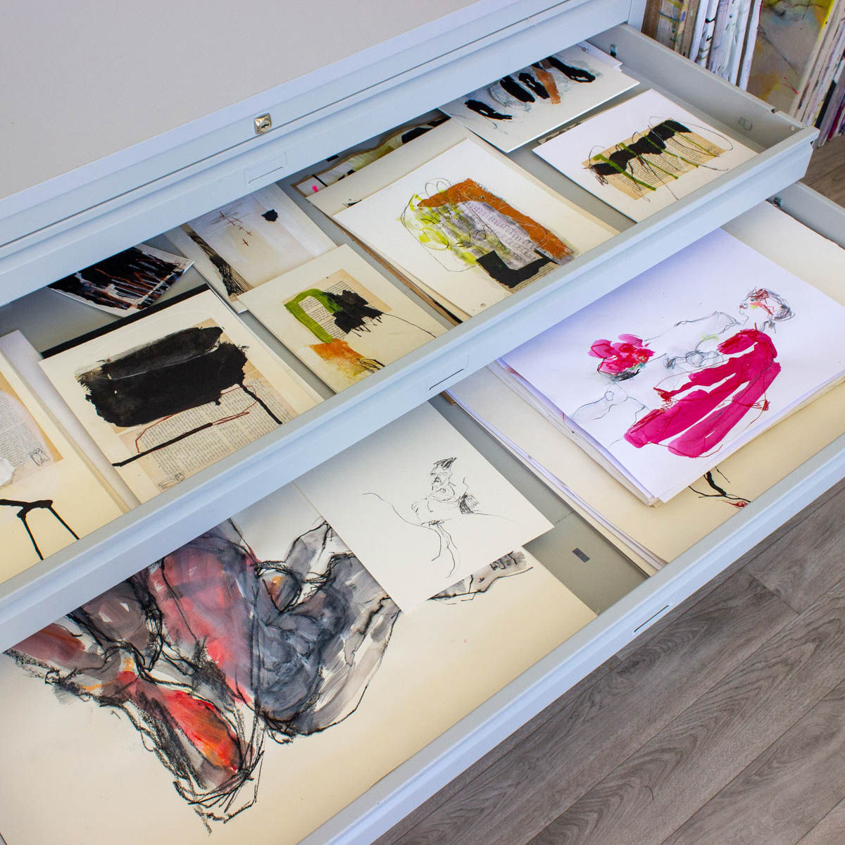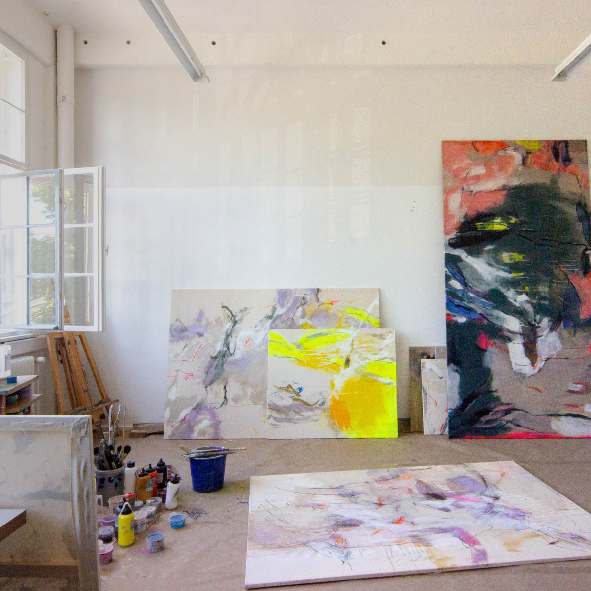 Der Hauptteil ihrer Werke ist abstrakt, doch ebenso beschäftigt sie sich seit Langem mit Aktstudien und Skulpturen aus Keramik. Dabei dreht sich alles um den Prozess: „Ich weiß anfangs nicht, wo das Bild mich hinträgt. Was als Zeichnung beginnt, wird bald um Farbe ergänzt, in verschiedenen Schichten und zeitlichen Abständen. Es entsteht ein Dialog mit dem Werk, eine Interaktion mit offenem Ende. Das kann ein Prozess sein, der nach einem Tag zu Ende ist oder auch nach Wochen des Überarbeitens. Das ist mitunter ein Kampf, der mich auch nachts beschäftigt.“