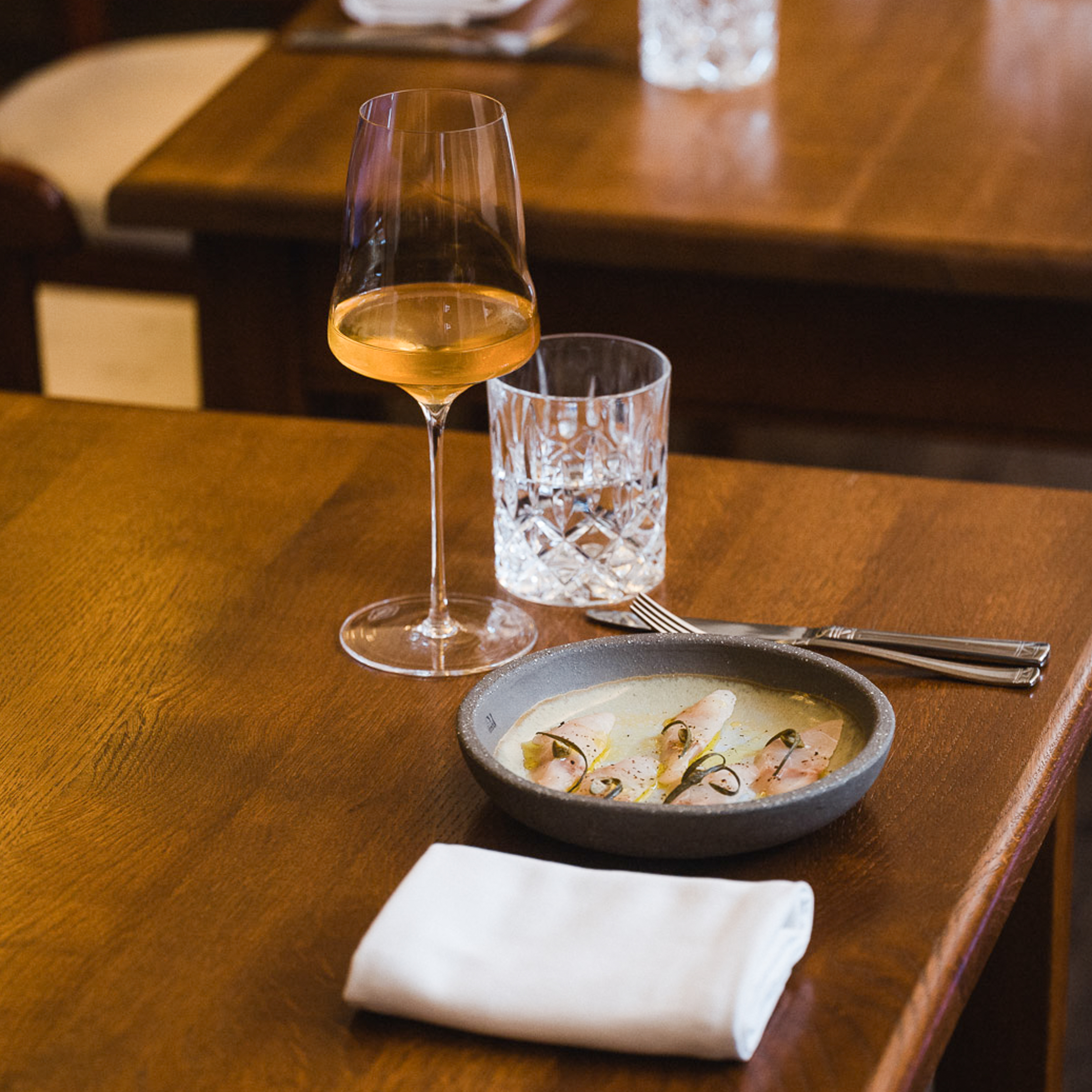 Ganz ohne Fine Dining kommen wir heute Abend dann aber doch nicht aus. Während das Abendbrot normalerweise noch einige weitere rustikale Teller bereithält, möchten Michael und Dominik uns nicht den Kern des Tante Fichte vergessen lassen.