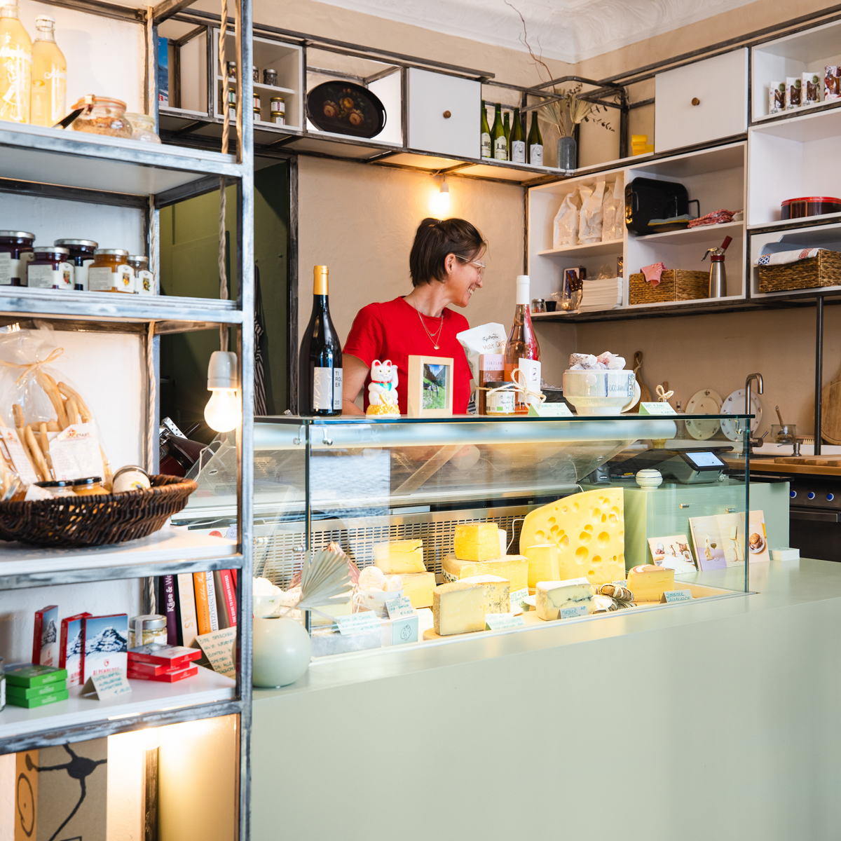 Die Regale sind liebevoll bestückt mit Produkten aus kleinen Manufakturen, die eines eint: Authentizität. Hier gibt es würzigen Bergkäse aus dem Emmental, französischen Ziegenkäse mit feiner Rinde, Südtiroler Speck, Kaminwurzen, sauerteigfrisches Brot. Zur kalten Jahreszeit dampft Raclettekäse auf Roggensemmeln oder ganzjährig warmer Leberkäs zwischen zwei Brötchenhälften mit Kren und Gurke. Alles wirkt beiläufig, nichts inszeniert.