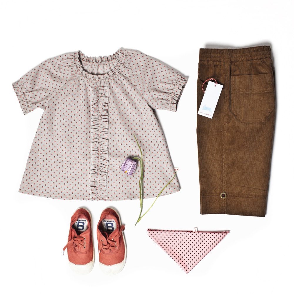 Ein Konzept, das sie im Übrigen auch auf den Großteil Ihrer restlichen Kollektion übertragen hat. Und so schaukeln auf den Bügeln hinter einem der Schaufenster des Modegeschäfts Esther Thomas - der einzigen Verkaufsstelle überhaupt - nicht nur Hosen, sondern auch schnörkellose Kleider, Röcke und Blusen für 2- bis 6-jährige, die Dank der vielen zauberhaften Stoffe dennoch alle einzigartig aussehen. Allesamt von Hand in Berlin gefertigt!