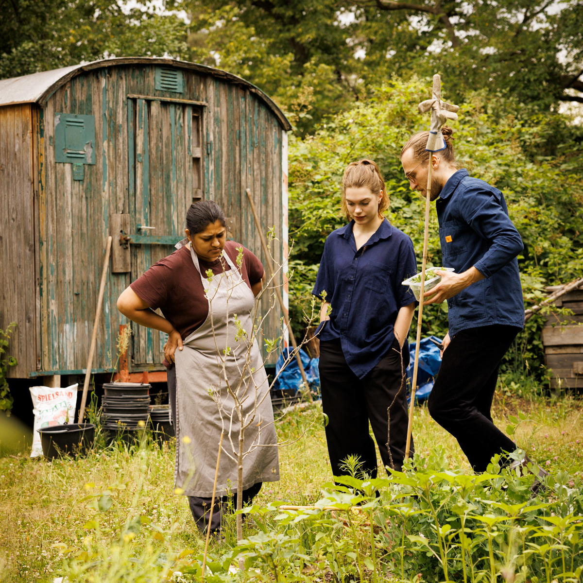 Duftveilchen, Spitzwegerich, Pimpernelle – vieles wächst hier, manches wird im Umland gesammelt, um es an renommierte Restaurants wie das 3-Sterne-Restaurant Rutz oder das Nobelhart & Schmutzig zu liefern. Doch aus dem Liefergarten ist längst eine Bühne geworden. Unter dem Titel „reficio“ lädt Martin Rötzel regelmäßig zu einem mehrgängigen Menü mitten im Grün ein.