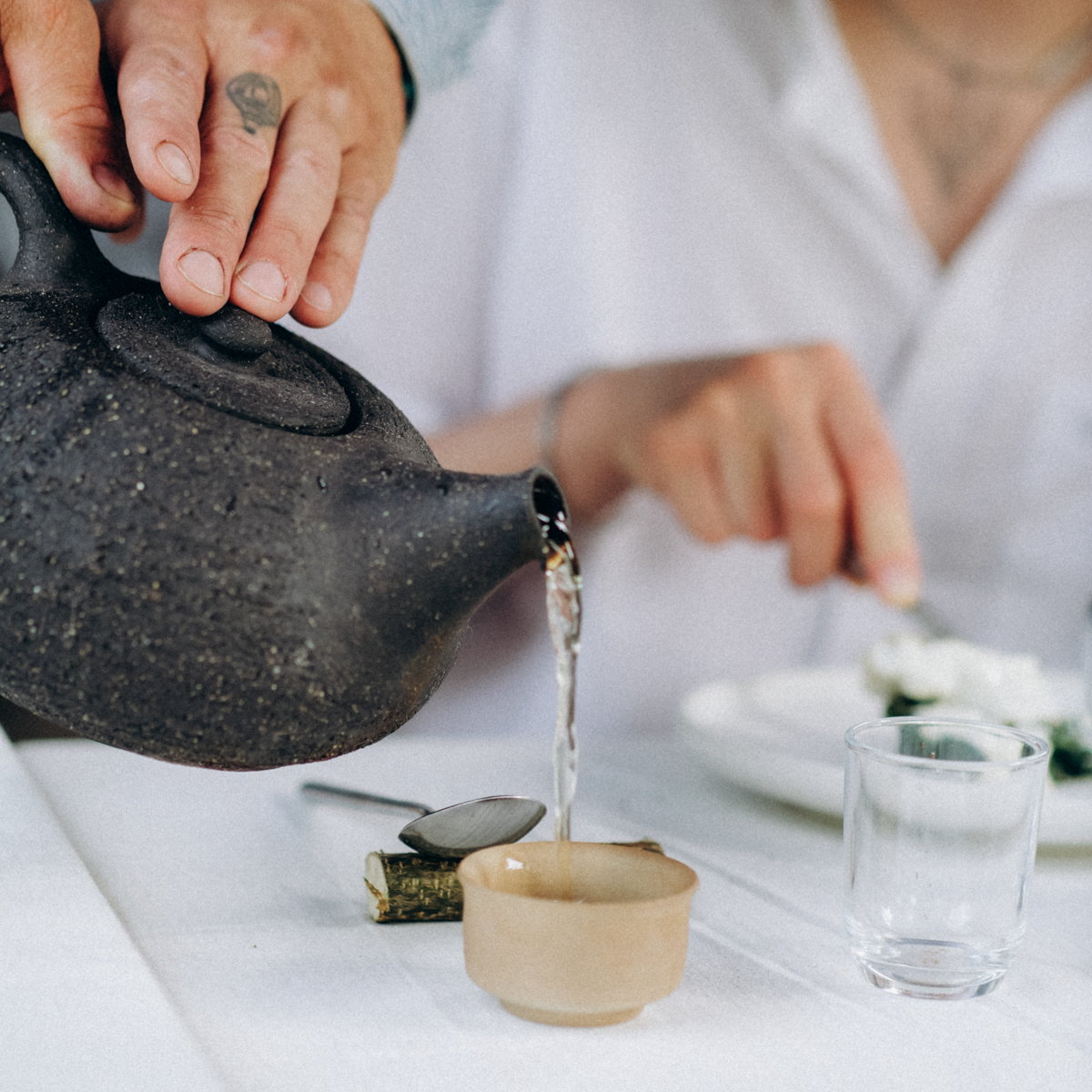 Getrunken wird alkoholfrei – eine weitere Leidenschaft von Martin Rötzel: Tees, Shrubs und Infusionen aus eigener Ernte, oft lauwarm serviert, überraschend vielschichtig und erstaunlich begleitfähig. Bisweilen kommen rare chinesische Grün- oder Schwarztees als Basis hinzu.