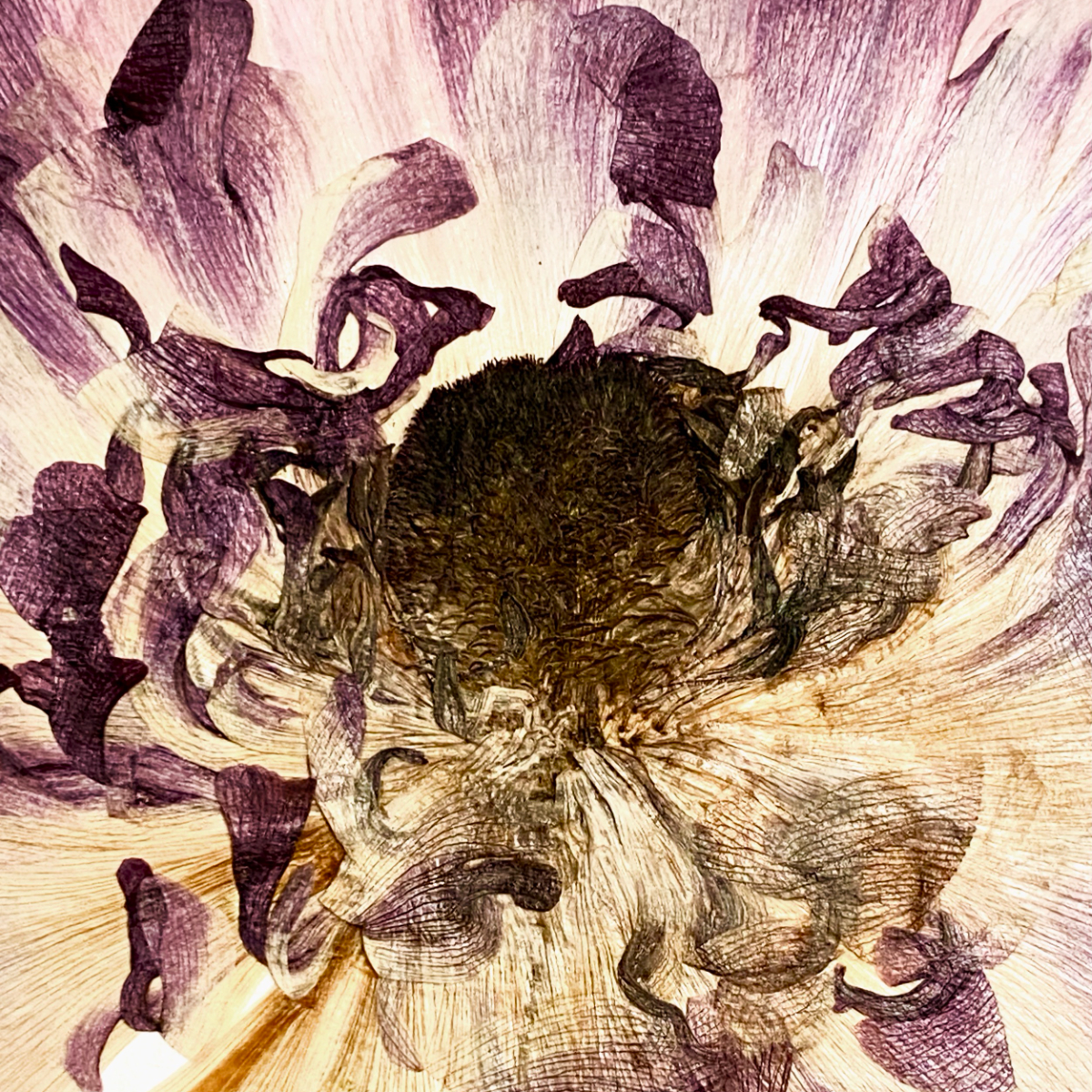 Das Pressen, die Veränderung der Farben sei ein Mysterium. „Das ist ja eigentlich kein lebender Zustand mehr und doch setzt sich die Transformation der Blume nach dem Pressen manchmal über Jahre weiter fort“, resümiert die Künstlerin die Anziehungskraft, die von den gepressten Blumen ausgeht.