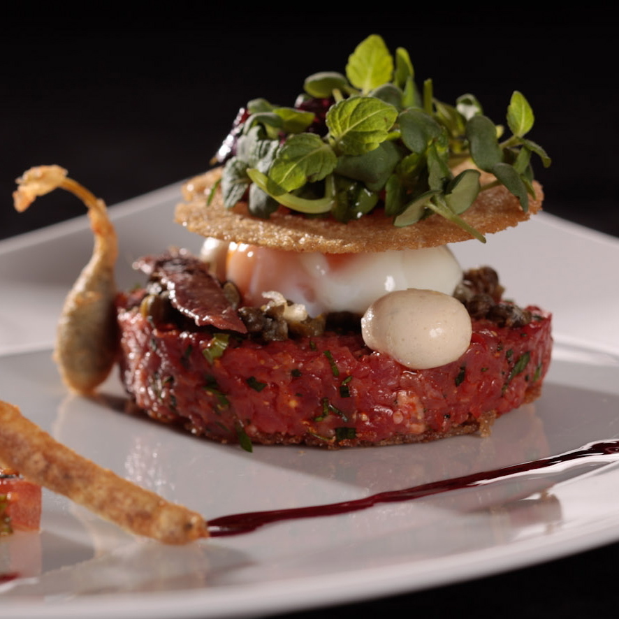 Als Hauptgang folgt „Balontine von der Müritzer Poularde mit Rosmarin und Pfifferlingen“ sowie „200 g Dry Aged US Prime Beef mit Bohnen, Rosmarinpüree und Sauce Choron“. Das über sechs bis acht Wochen im Haus(!) gereifte Rinderfilet ist das beste Fleisch, das ich je gegessen habe. Wir rollen mit den Augen, summen leise vor uns hin und genießen erneut. Wir planen wen wir bei unserem möglichst zeitnahen nächsten Besuch in die Weinbar mitnehmen wollen und schwärmen weiter.