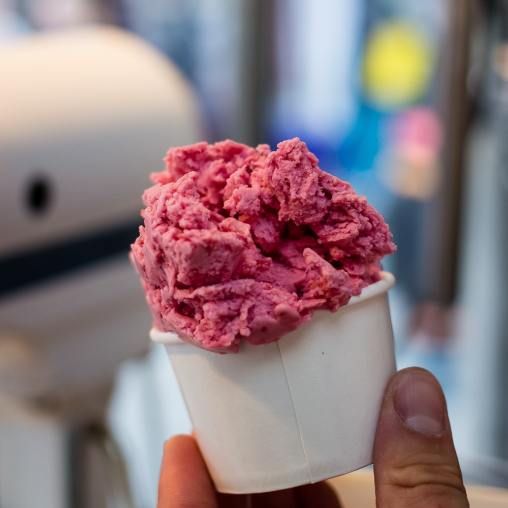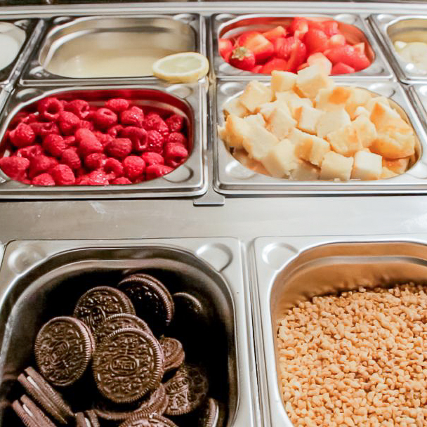 Dabei ist, was zunächst etwas aufwendig klingt, im Grunde ganz einfach. Mit Hilfe einer amerikanischen Küchenmaschine entsteht aus individuell gewählten Zutaten wie Schokolade, Nüssen oder Früchten unter Hinzugabe von Milch, Sahne und Zucker binnen weniger Sekunden ein herrlich cremiges Eis. Das Ganze geschieht direkt vor den Augen des Kunden in einem Eiswagen, in dessen Theke auch sämtliche Zutaten bereit stehen.
