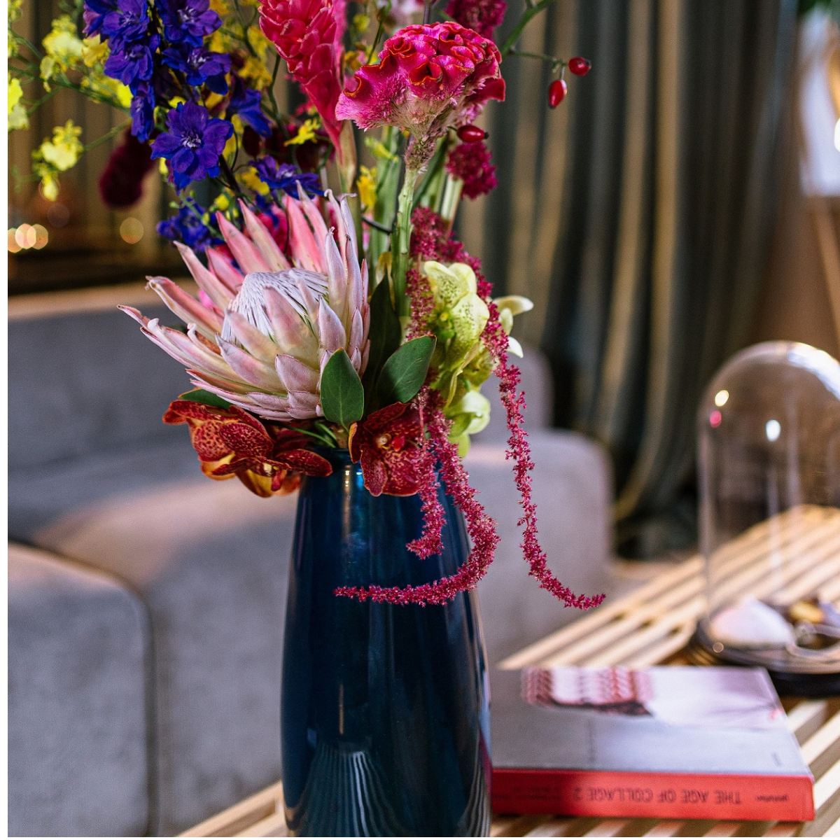 Seine Blumengestaltungen und die unkomplizierte Zusammenarbeit mit Zinnober begeistern durchaus namhafte Kunden, darunter viele Hotels, wie das Ritz Carlton, das Marriott und das Central District oder auch das Helix Hub. Auch gebrandete Blumensträuße und Pflanzenarrangements für Firmen und Stores verschickt das Zinnober-Team deutschlandweit. Aber weil kein Mensch Blumen nicht mag, freut sich natürlich auch die Tante in Dresden über einen pop-artigen Blumenstrauß von Zinnober.