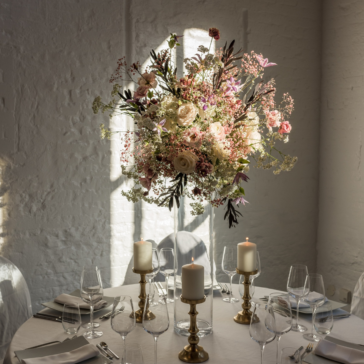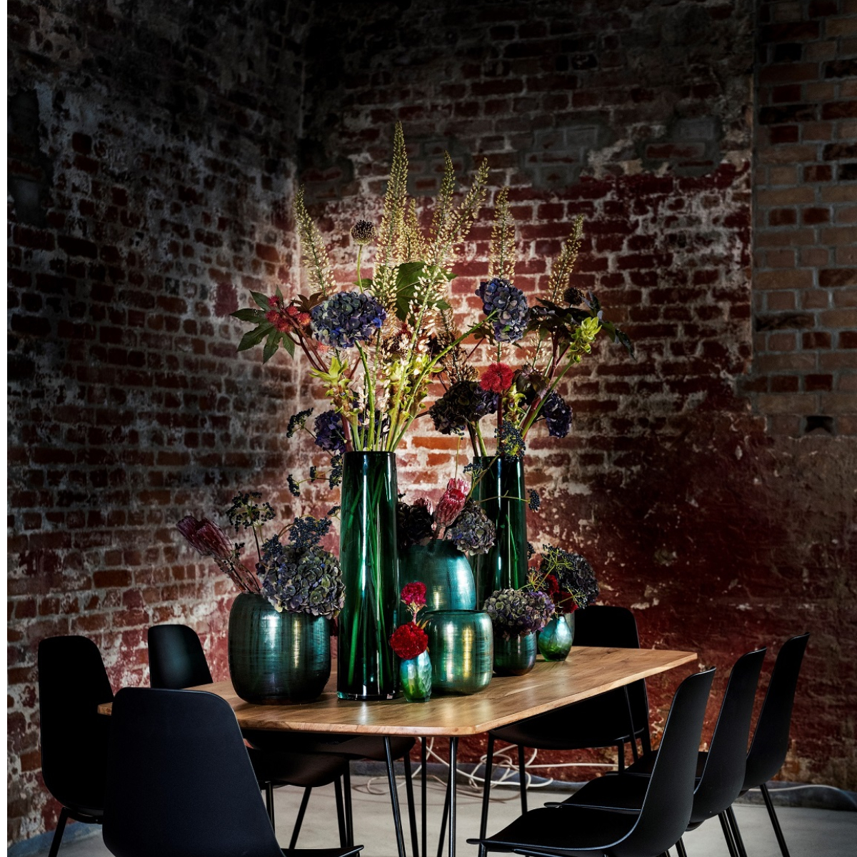 „Bei uns geht es darum, Farbe und Form der Blumen immer sehr natürlich, sozusagen wuchshaft, zu lassen und nicht so kompakt, wie man es häufig hat. Der Rittersporn beispielsweise steht so in der Vase, wie er in der Natur wachsen würde. Und so versuchen wir ihn auch in der Gestaltung zu verarbeiten. Nicht völlig kurz in einen Strauß gebunden, sondern wirklich auch der Blume ihren Raum zu geben.“, erklärt Lukas den Stil von Zinnober.