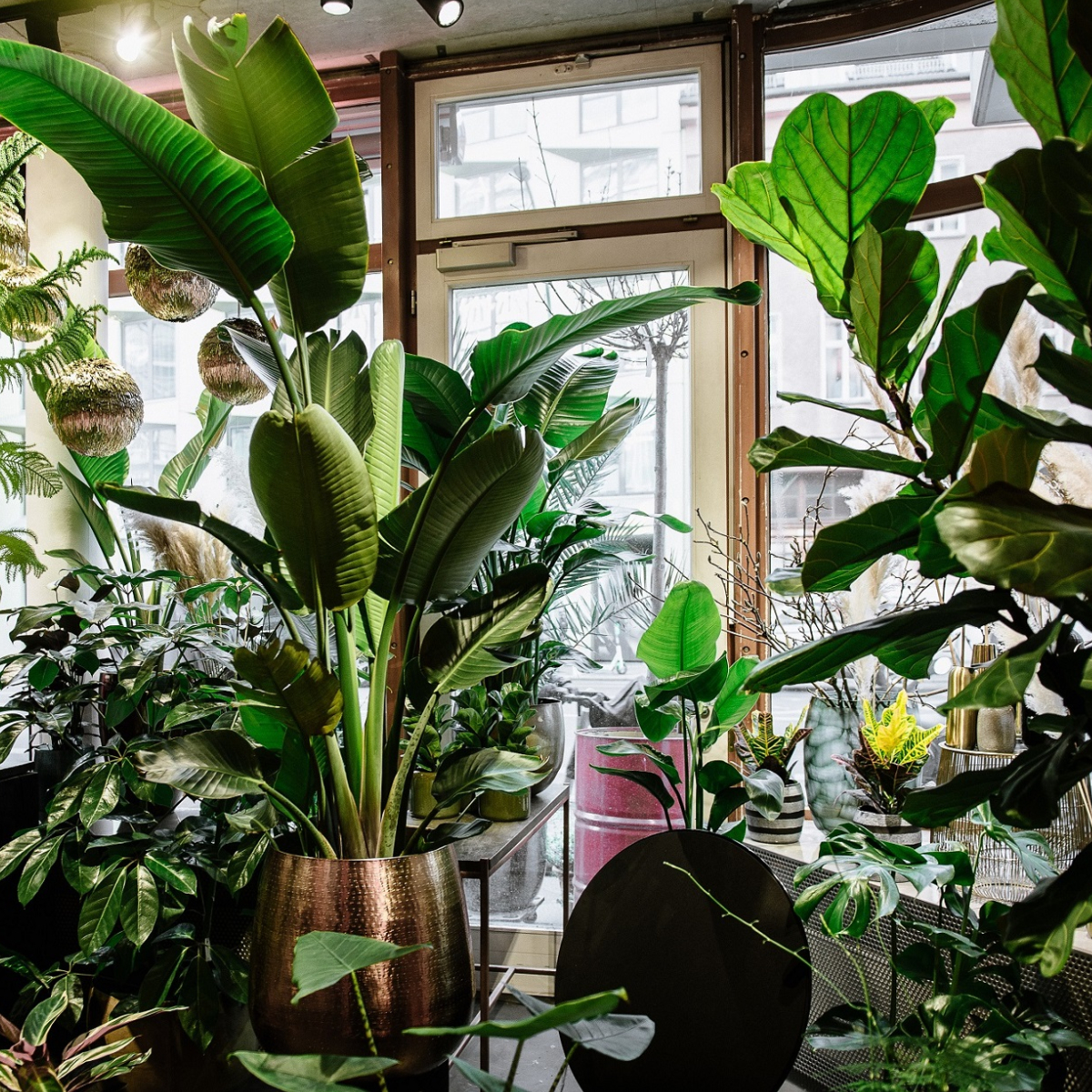 Langstielige bunte Blumen in allen erdenklichen Formen und Farben bestimmen die Ladenfläche, großblättrige Grünpflanzen sorgen zusätzlich für Stimmung im Zinnober in der Chausseestraße. Vereinzelt kleine auffällige Deko-Elemente wie metallene Käfer, üppige Vasen, dschungelartige Terrarien. Dynamischer Elektro unterstreicht einen gewissen hippen und jungen Vibe. Natürlich riecht es wahnsinnig gut. Klar ein Blumenladen eben.