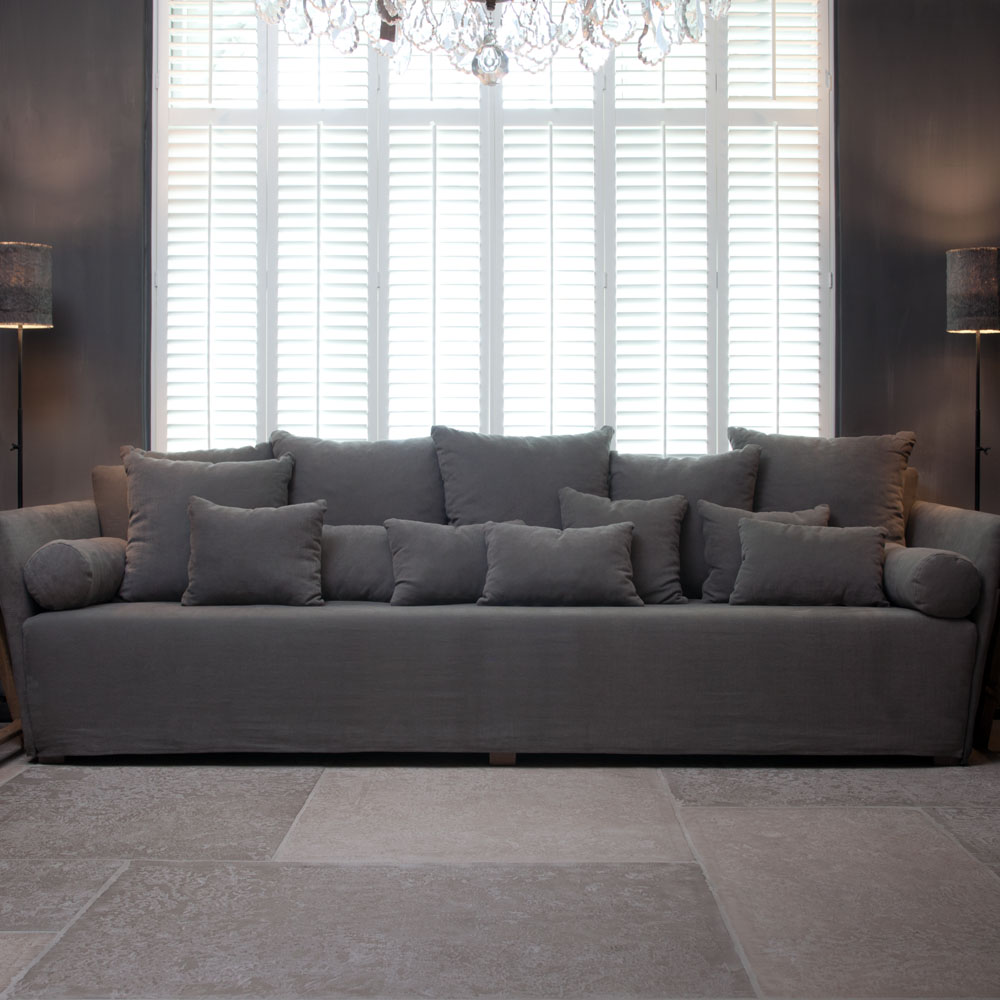 The floor tiles are copies of old church tiles by 'Castle Stones' that look impressively authentic due to the unusually broad joint. The walls are painted with mineral gesso and lime paint colours by 'Pure & Original'.