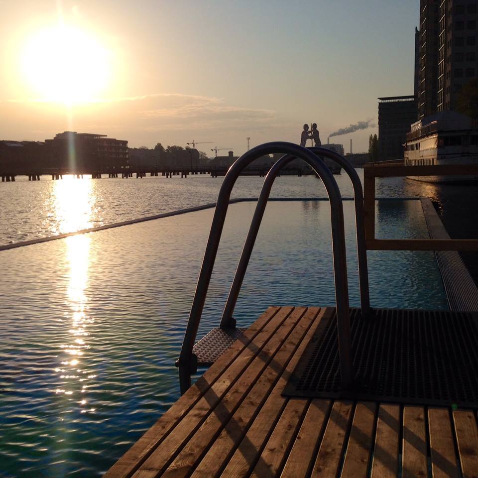 Berlin can be quite hot and sweaty in summer and there are only to things that can help: cool drinks and swimming pools! Good thing we have a swimming pool swimming in the city centre on the Spree. Next to an artificial beach, the wooden bridge that connects the pool with the land, is perfect for hanging out and enjoying the sun.