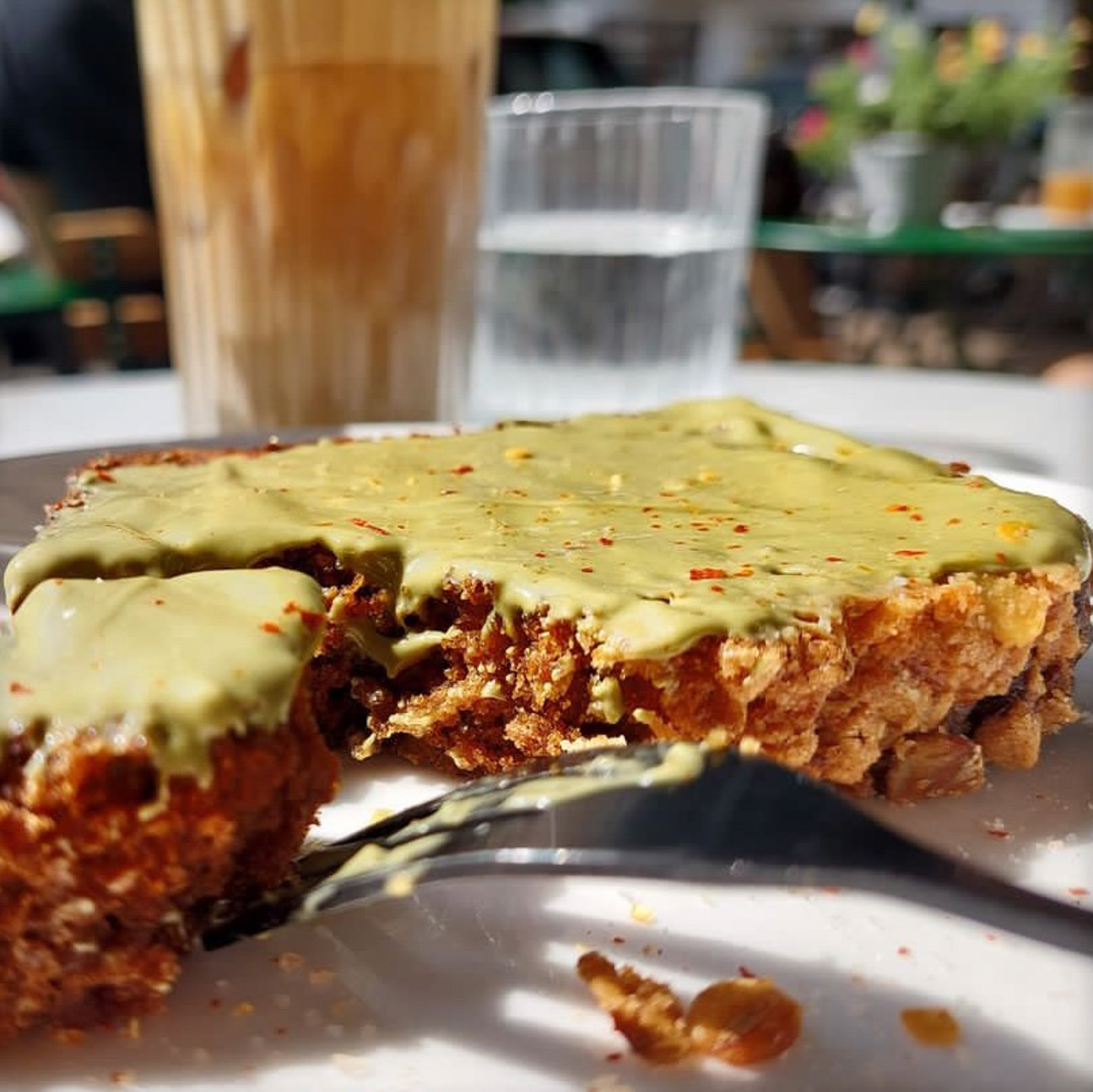 Plus a daily selection of vegan and non-vegan cakes and biscuits in the pretty homemade glass display case. An Australian classic and very, very delicious is the banana bread, which is also available spread with pistachio cream. However, we still opt for butter and love the moist, fluffy texture and especially the crunchy granola crust on top!