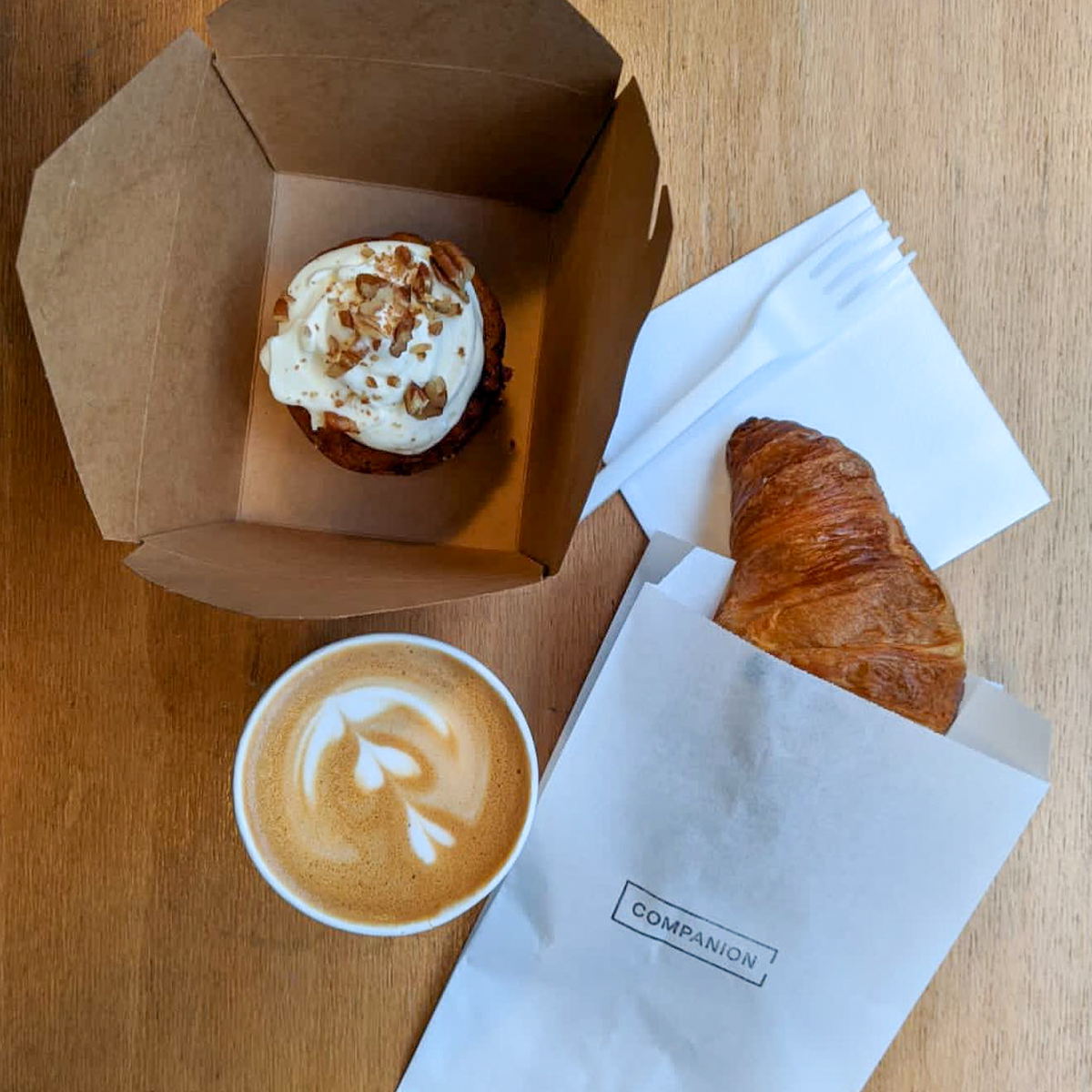 A few unplastered walls offer a view of a rustic brick building. Otherwise, minimalist furniture and warm wood tones dominate the café's space. This goes wonderfully with the warm drinks served here. The name Companion is no coincidence, as the producers of all the teas and coffees at Companion Tea & Coffee are carefully selected.