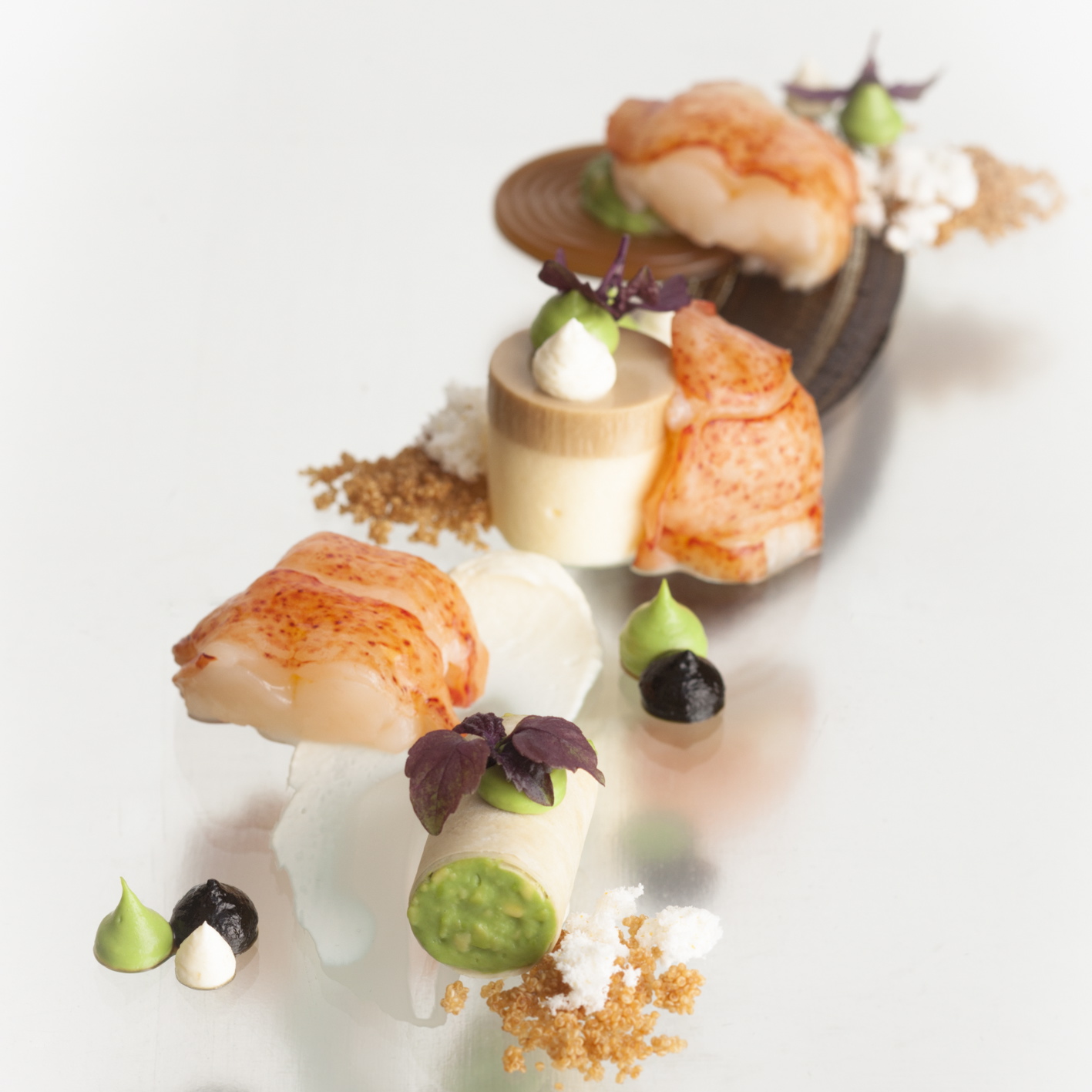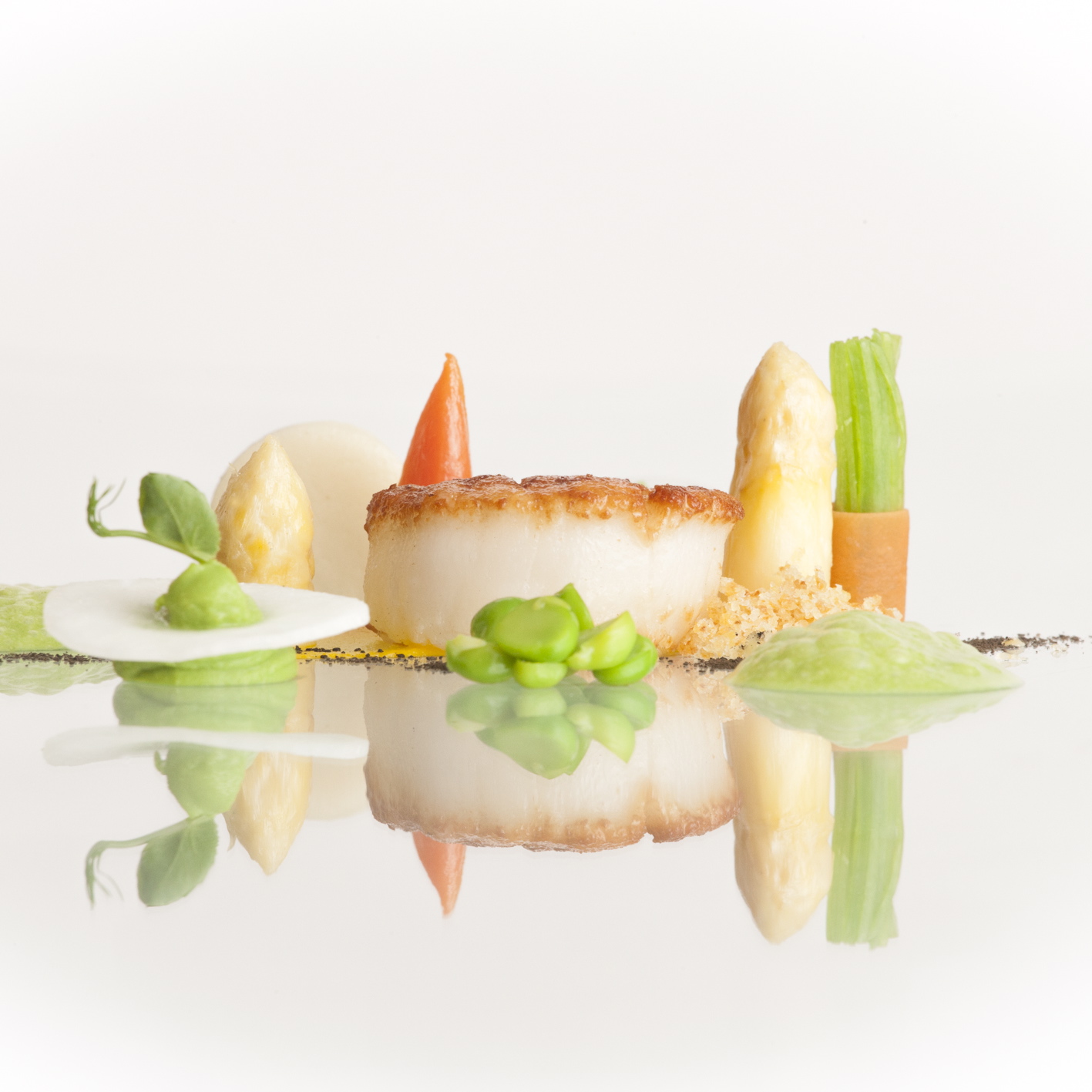 Immediately we got offered small appetizers that wowed us by their visual appearance and their taste. Among them was a tiny crispbread with beef tartare and a 1000-year old egg. Just heavenly! The Amuse-Gueule was a brilliant follow-up and a befitting prelude for the coming courses like the ‘Lobster from Brittany with fermented garlic and Verbena’, `Scallops in Peavelouté with Carrot, Asparagus and Cabbage Turnip’ or ‘Morgan Ranch Kobe Beef with Ginger and Piment’.