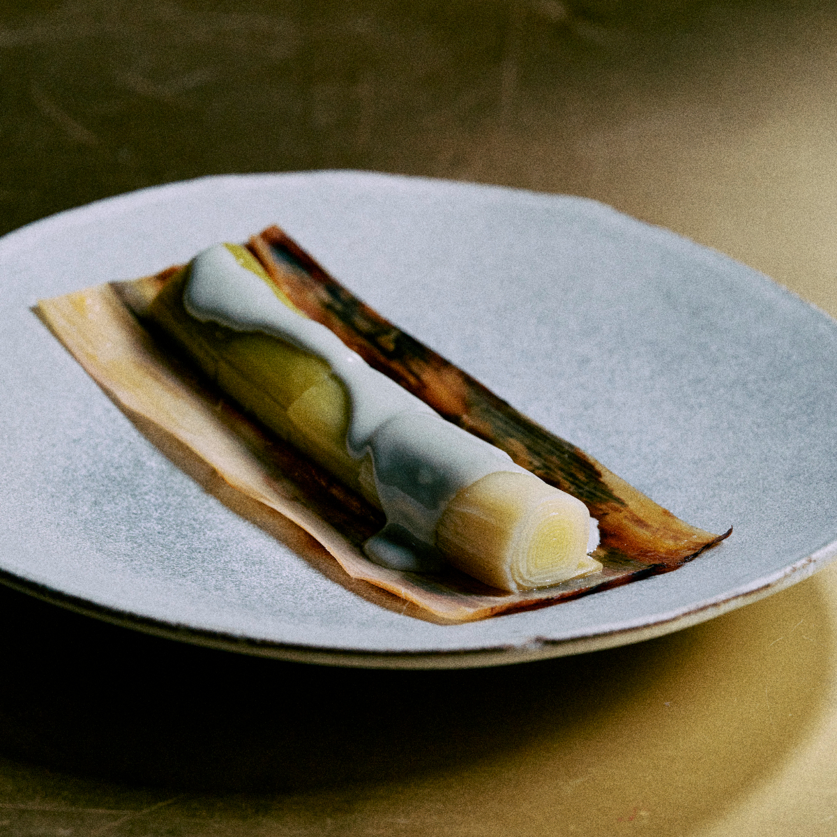 This very open design is refreshingly different from other concept kitchens: The narrative is not pre-determined; the evening can develop naturally in any direction. The first course is grilled spinach with smoked butter and roasted pistachio paste. The dish has just the right smoky aromas and sets the palate in the right mood for the central theme of the evening.