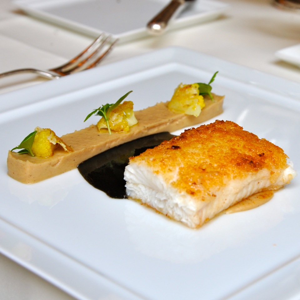 The Onsen tamago, one breaded in Panko, the other one plain, is named after the Japanese hot springs that it’s usually slow-cooked in. The long preparation process at steady low temperatures makes for a buttery flavorful texture in both, egg white and yolk. Lohse breads these eggs with panko, a Japanese breading of white bread crumbs, and fries them. A very delicate endeavour, because Onsen eggs, like their poached equals, are very sensitive. An aromatic asparagus salad was served on the side, with chervil and olive oil - excellent!