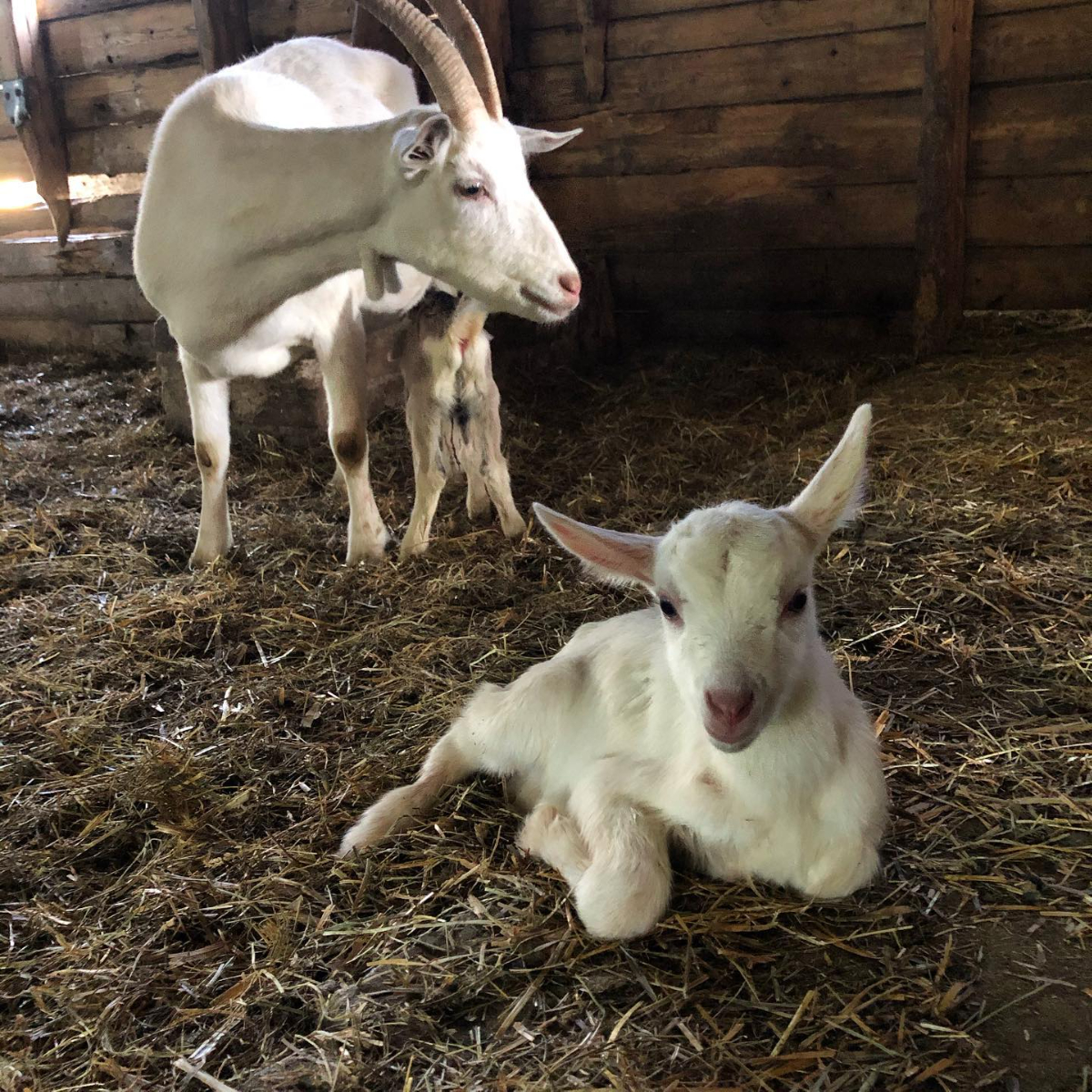 Especially during lambing season. Goats do give birth on their own, but with 120 goats, there's always something going on. It wasn't until the night before my visit that a goat started acting strange. "I examined her and found that there was a kid stuck in the birth canal." Sarah demonstrates by gently grabbing the small hind legs of one of the kids surrounding her and pushing the rear end forward. "We called the vet and found there were two more in the mother's belly.... They're lively, everything went well," Sarah sounds routine, but also a little proud. The goats just don't know when to call it a day.
