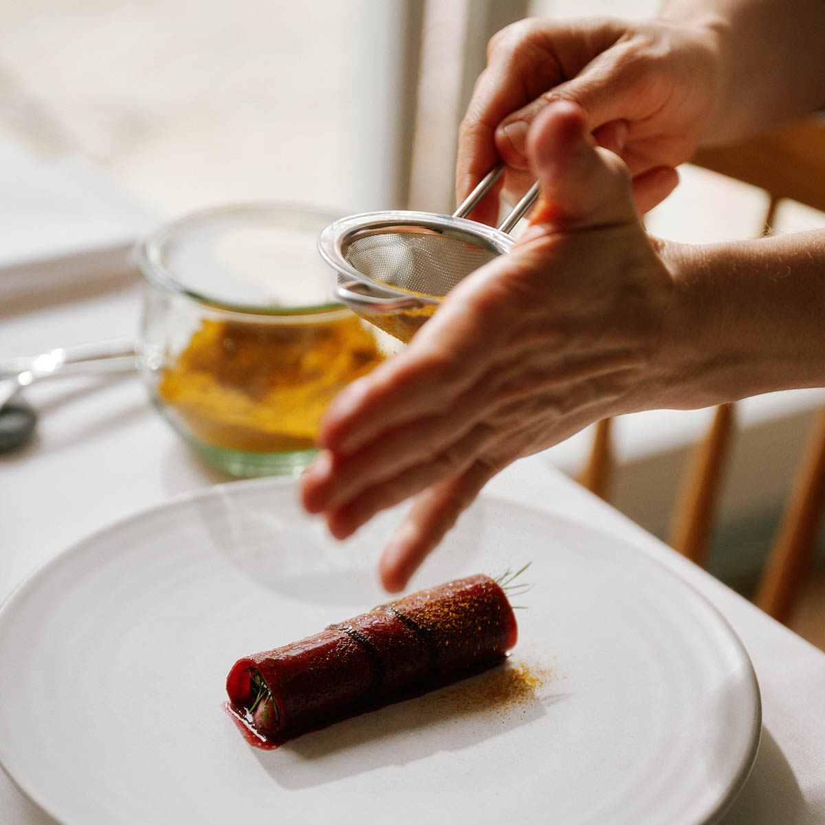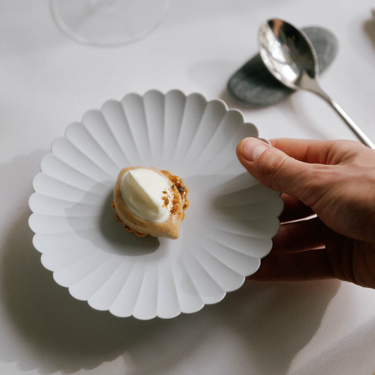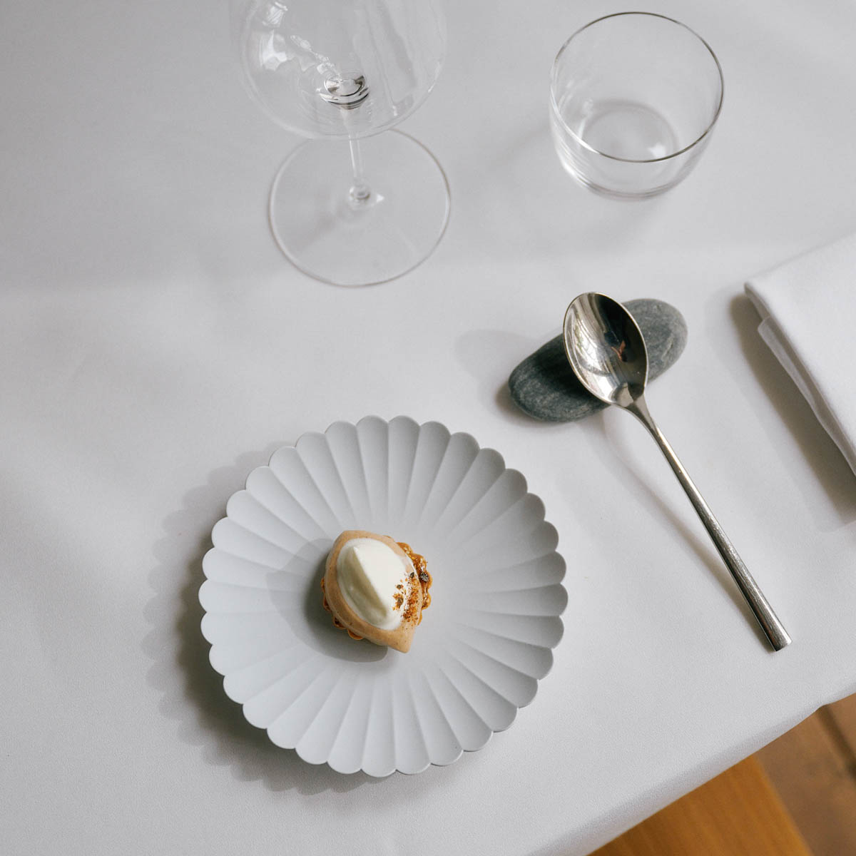 Butter, yuzu and nori have entered into a liaison that tempts you to clean even the very last bit of sauce from the plate with your finger so as not to miss any of it. The hand-rolled noodles have just the right bite, which is highly satisfying and comfortable. This course may look unspectacular, but the taste is really something.