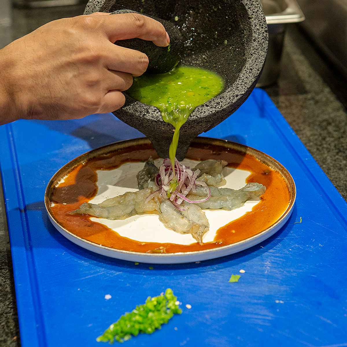 And that's precisely what he deliciously brings to the plate. We try Francisco's "Mexican Nigiri": a tuna belly matured for 17 days, from which Francisco has carefully teased out the essence of its taste. "In Japan, it's served with rice and soy sauce, but in my Mexican version, I serve it with corn, pinto beans and hoja santa," Francisco explains. The homemade tostadas served with it act as the perfect stage on which the subtle differences in flavour of the different belly pieces can also be discerned.