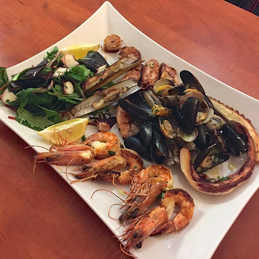 After an outstanding octopus carpaccio accompanied by a small salad of wild herbs, Vladimir then presents to us - not without a little bit of pride, I might add - a gigantic platter of seafood and shellfish such as prawns, calamari, scallops and squid as a second round of appetizers. And despite our initial fears of not going to be able to devour the whole goodness of it, we managed to succeed simply because it was that good.
