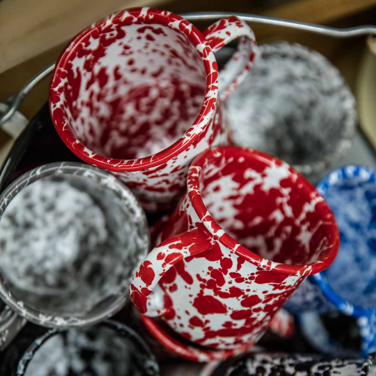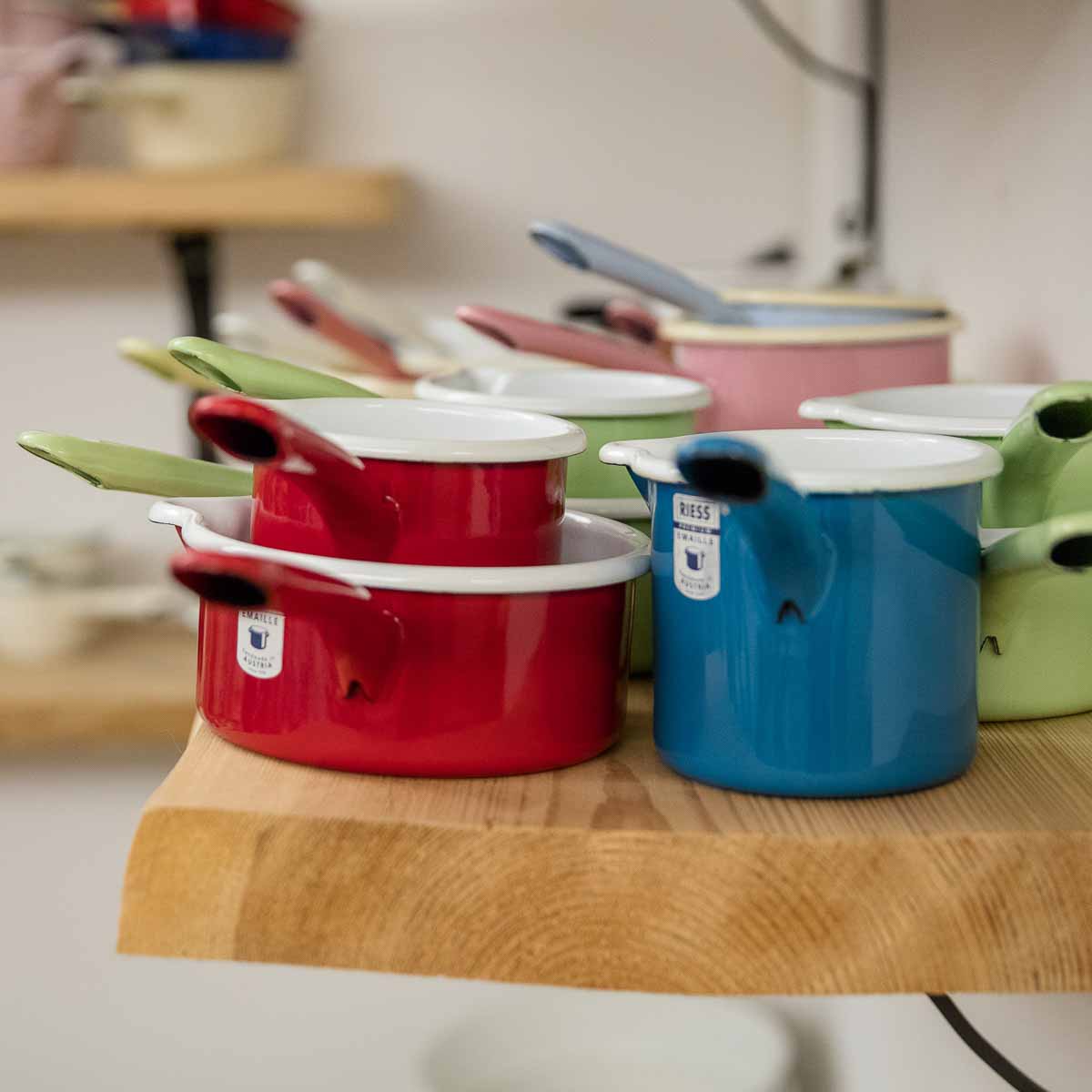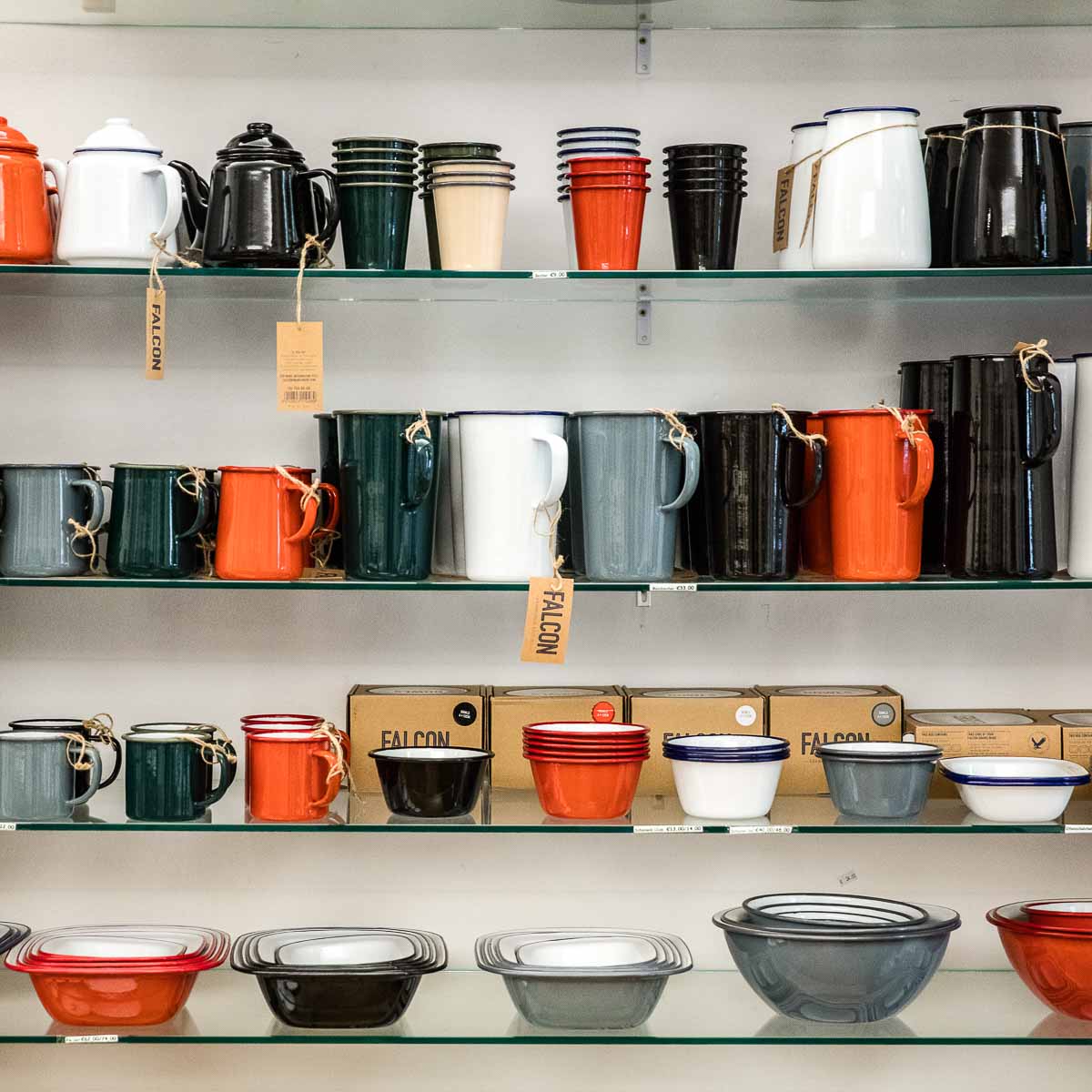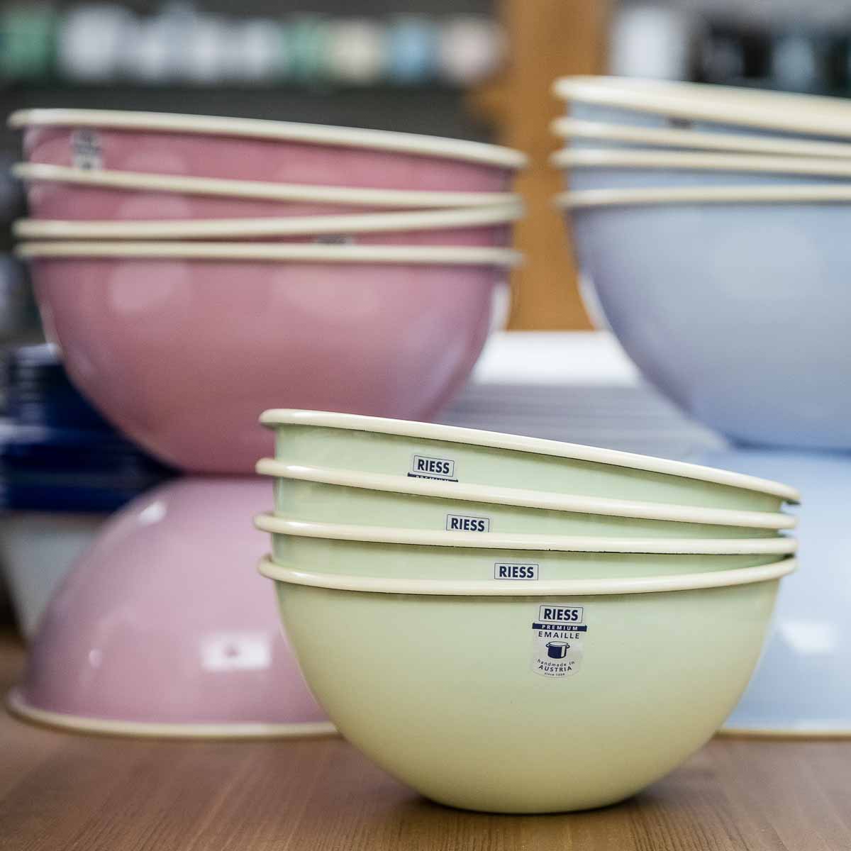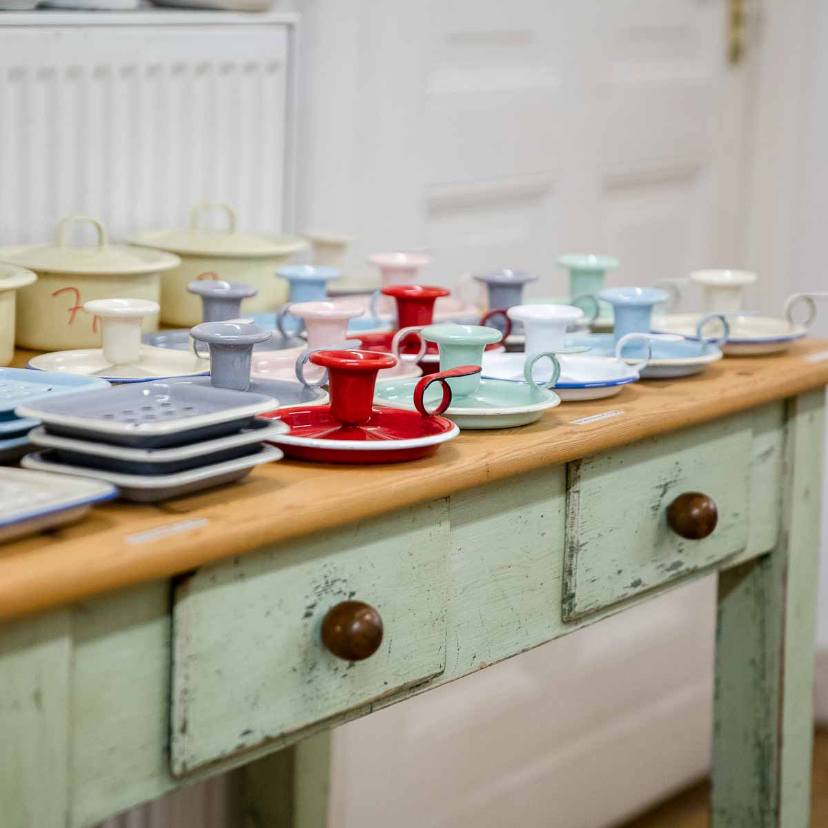Liv Emaille is an Eldorado for enamel lovers. From the king-size paella pans, to house numbers, to multicoloured Mexican trays – Stephan Antusch certainly has his share of exotic items on offer. And to commemorate his childhood, even a few enamel-free egg cups, soap pouches and net shopping totes from original production sites out of former east Germany have been added to the mix – really nicely done!