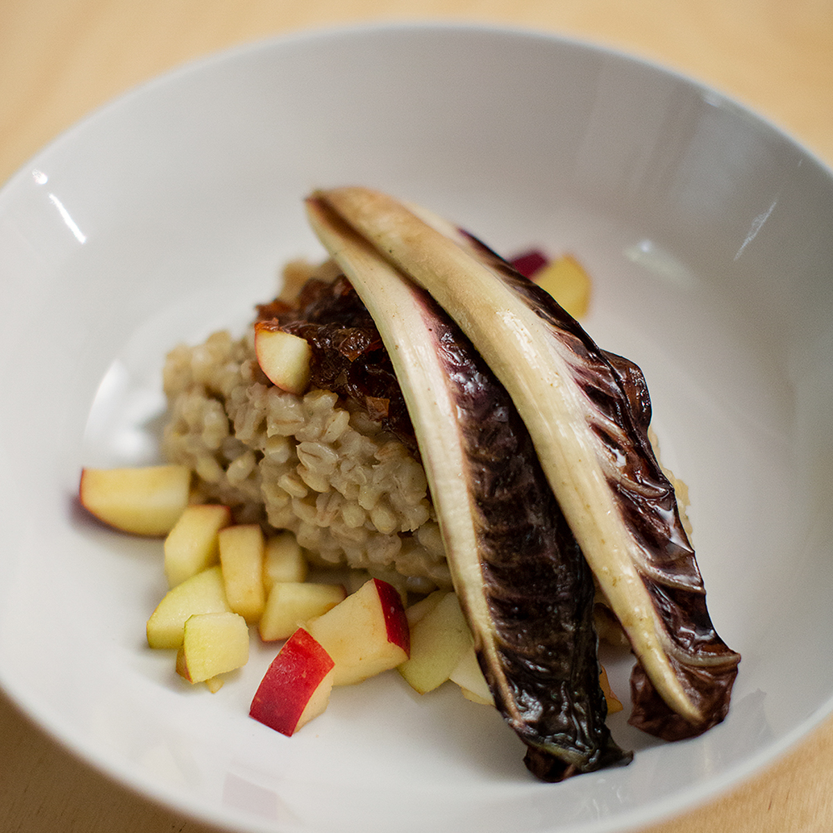 The bread dumplings with creamed mushrooms are rich, hearty, and a joy to eat at this cold time of year. What's more, they are hardly distinguishable from the non-vegan original. Dish number two is a little lighter, more colourful and fruity: beetroot lentil hummus with miso carrots and orange coleslaw. It tastes fresh yet homely and is skilfully contrasted by the crunchy side salad.