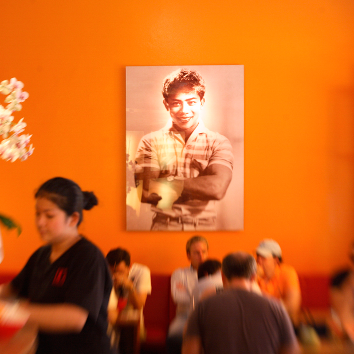 Monsieur Vuong is a family restaurant in more ways than one. In terms of name and face, the restaurant is dominated by Dat's father, whose timeless portrait from the 1950s forms the restaurant's logo. He stands there with a broad grin in a striped polo shirt, and could also have come from a fashion or perfume advertisement.