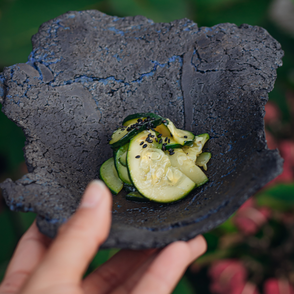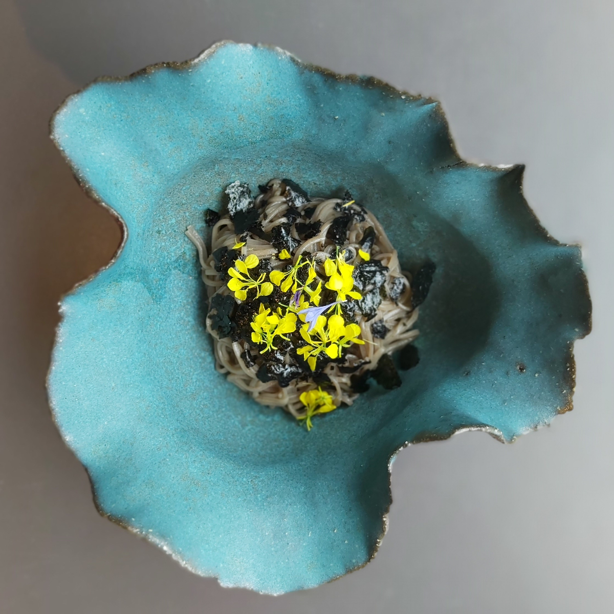 This is also due to the fact that a significant factor in Korean food culture is fermentation. At NaNum, those ferments and vinegars are made in-house. Many foods that find their way onto the handmade ceramics at NaNum grow in Jinok Kim's garden and enrich the kitchen with garlic blossoms, quince, flowers, goutweed or spruce needles from surrounding fields and meadows, and are dried, boiled down - and fermented.