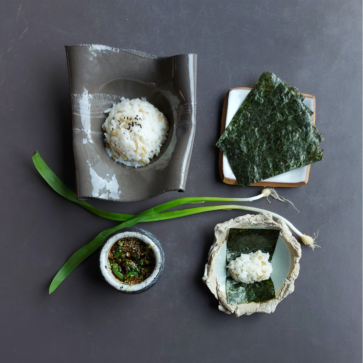 We particularly like the next dish: perfectly (!) cooked rice, which we wrap up with some dried nori seaweed and the first spring-fresh wonder leeks of the season. A little DIY sushi kit, so to speak (without wanting to sound disrespectful), phenomenally weaves the spicy flavours of the first tender spring herbs with the homeliness of the rice.