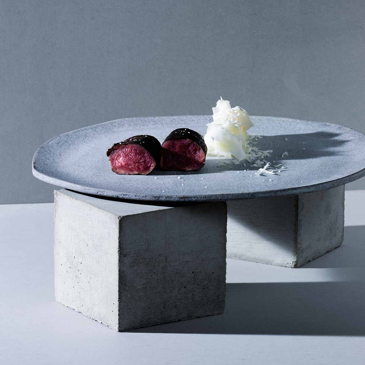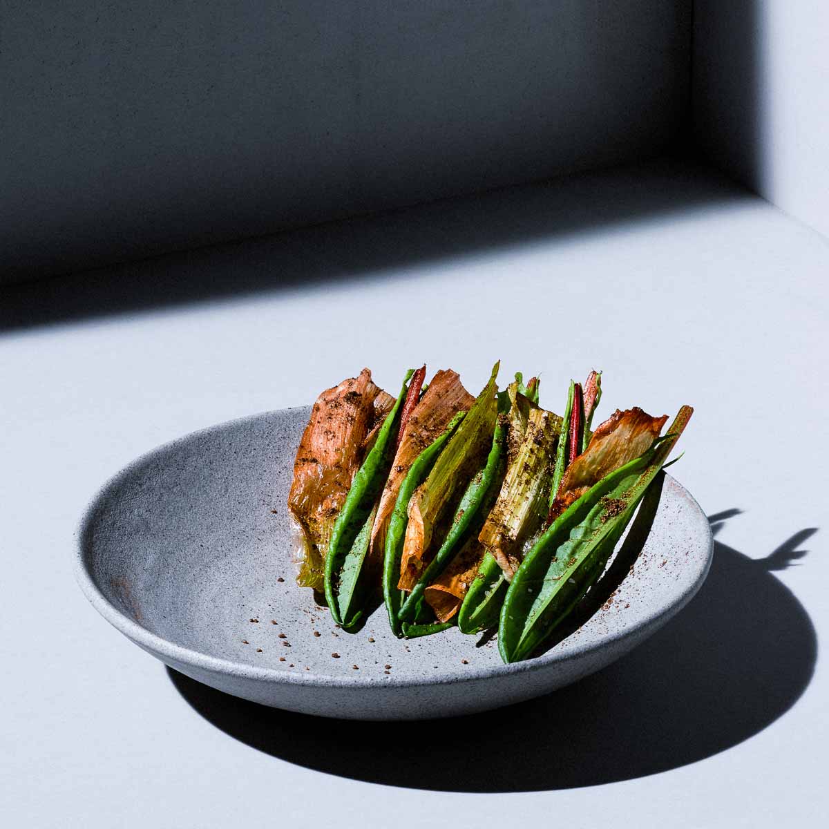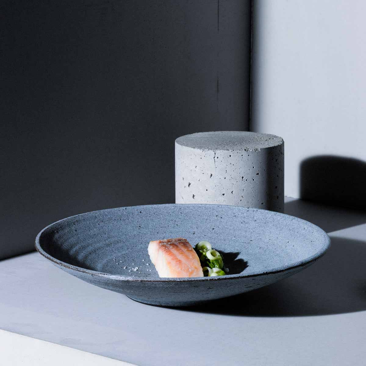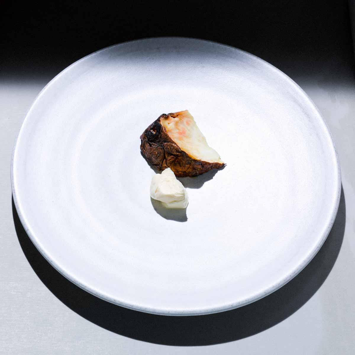 Guests sit around the long, u-shaped counter, as if they were theater-goers observing the chefs on stage. They are invited to follow how their next course is being put together. The hand-crafted plates from a Berlin-based Buddhist potter are often laid before the diner with only one or two ingredients on them.