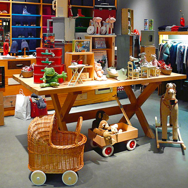 The collections change seasonally and the whole palette gets rearranged constantly so that you feel like you've entered an exciting new store each and every time. From Senger stuffed animals, classic kids' fashion by Petit Bateau through to trendy labels from France and The Netherlands you can create a look way beyond baby blue and pink.