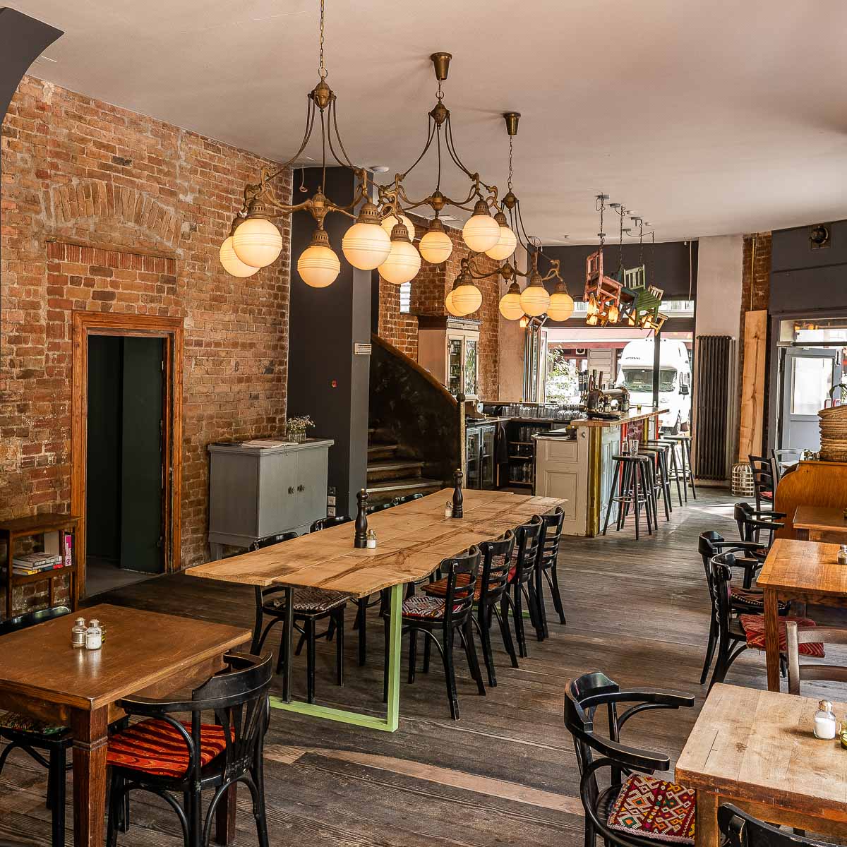 The gastropub Lausebengel on Grimmstrasse 21 in the Graefekiez is roomy: A total of 70 guests can be seated inside and almost 90 outside. The latter is ideal for catching the first rays of sunshine in the spring – and for finding shelter in cool shadowy corners in the summer.