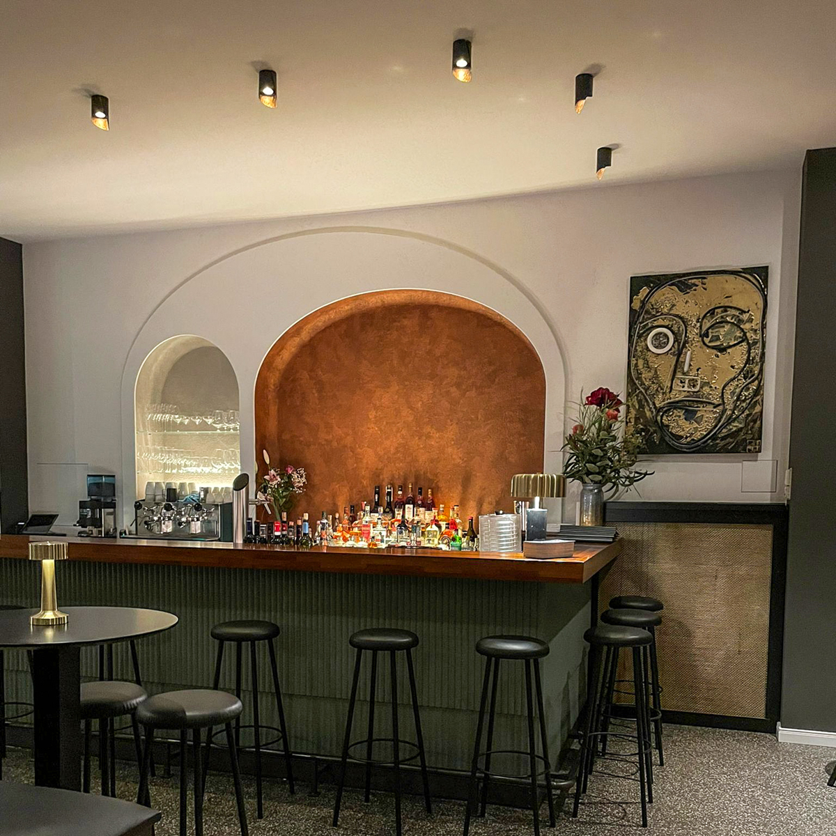 Together, the two have developed an informal fine-dining restaurant with a three-part kitchen concept, where you can enjoy a drink as well as a 6-course menu. In the renovated premises of a long-established Italian restaurant, a well-thought-out spatial concept opens up, which does everything right at once.