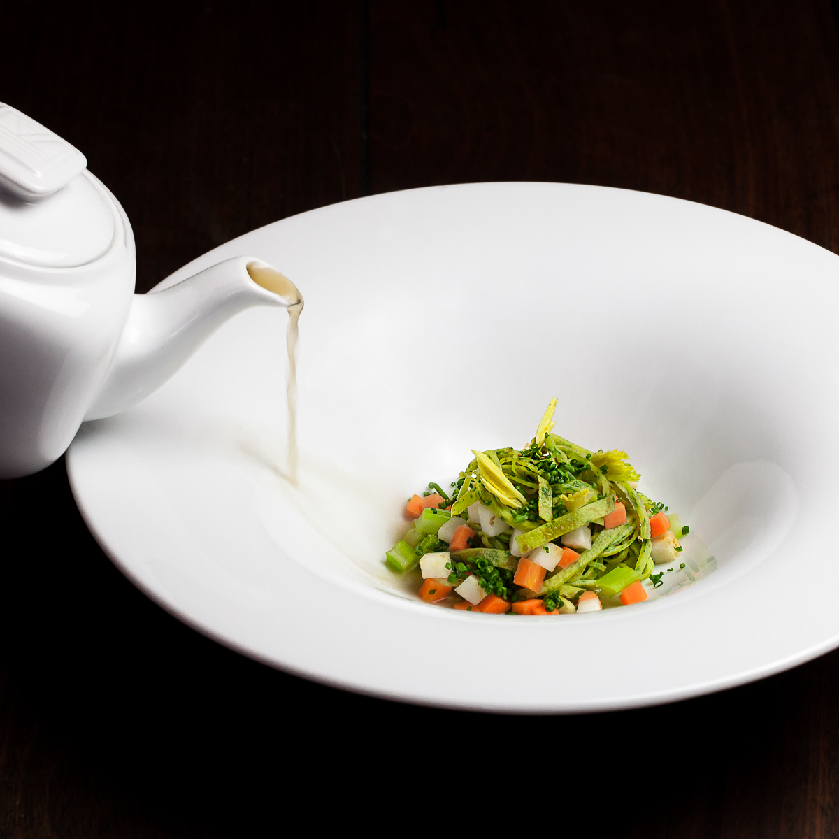 The braised octopus with peas and lime is difficult to come by. The calamari is soft as butter and lightly spiced, the peas come whole with chilli and as a creme. The lime adds acidity. The asparagus salad comes as sticks with diced apple in a creamy sauce, along with a fresh wild herb salad. Wonderful.