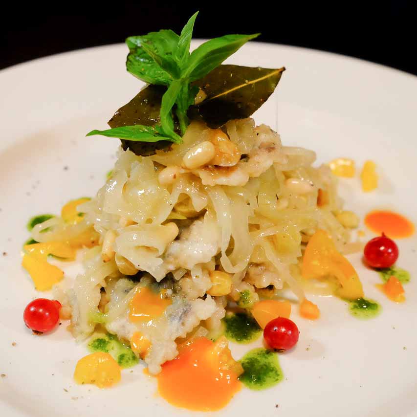 His wine recommendation- a Greco di Tufo from Friuli- completely meets our expectations and pairs incredibly with our starter. The swordfish carpaccio is so well prepared that we get caught up in every bite and completely forget about our conversation! Absolutely incredible!