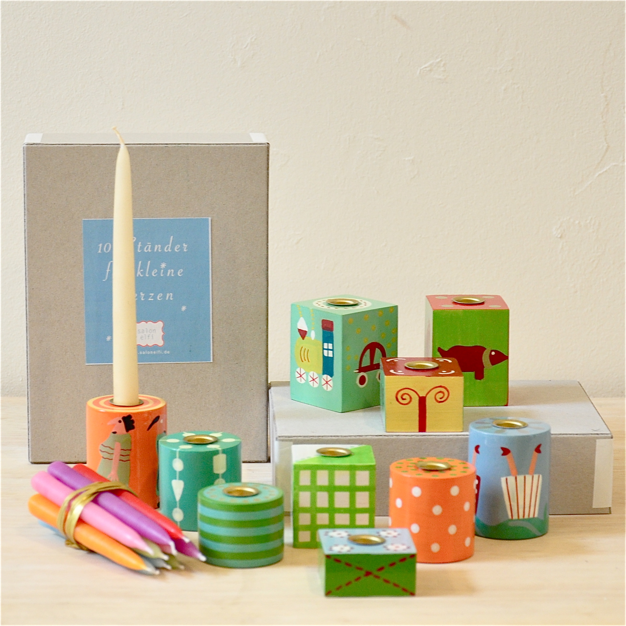 After our first meeting, a lot of things have happened at Salon Elfi. Today you can find her collections in various shops all over Europe. The selection of toys has shrunk in favor of paper-and gift items and still you can find the great attention to detail and sense for beautiful colors and material in all of her products. Everything is created by Verena and some series, like the screenprint cards, are produced in her own workshop in Berlin. Other things, also handmade, are produced in small fair-trade shops in India that have been initiated by her, with the UN or the government on site.