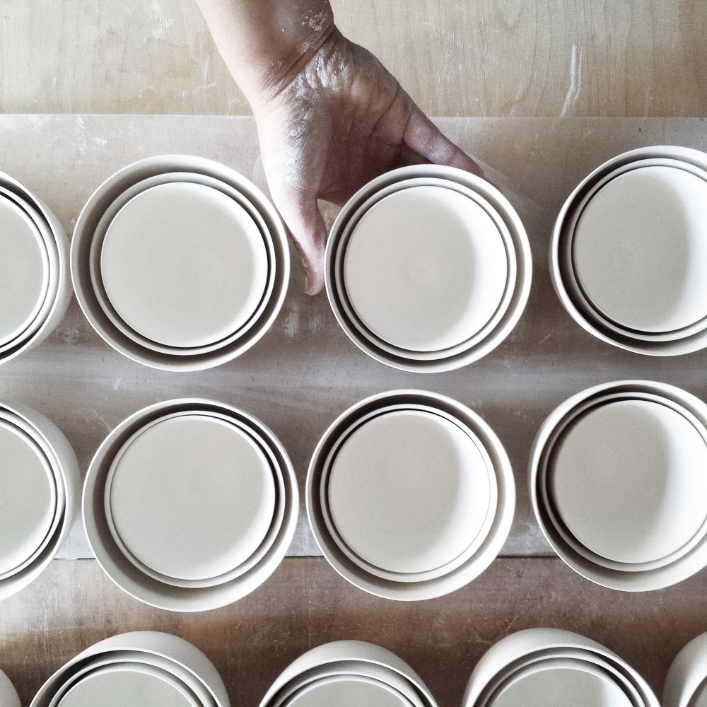 When I first saw Claudia Schoemig's work, it was love at first sight. And here we are, sitting together while I interview her about her story. Born and raised in Schonungen near Bamberg, she was trained in a traditional workshop before moving to Augsburg where she received extensive training in turning, shaping and moulding porcelain by hand.