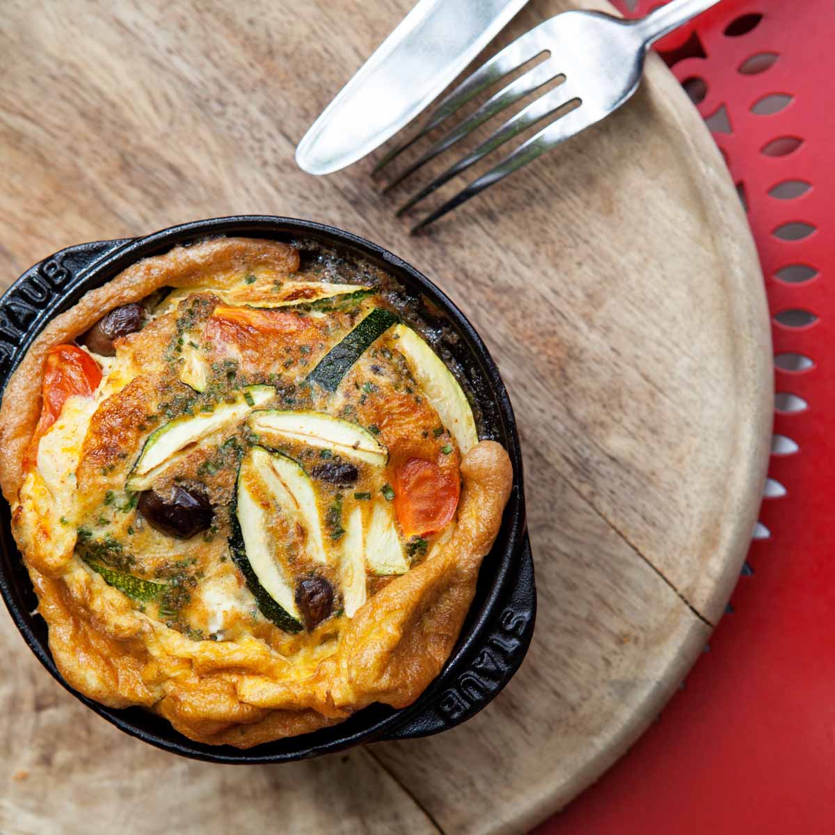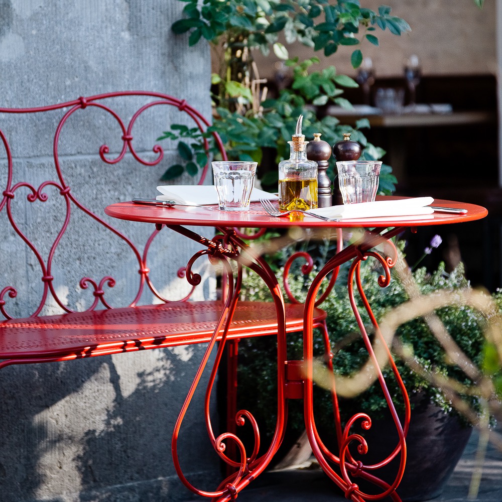 When the weather is less satisfactory, however, the beautiful interior and the cheerful red tables on the dreamy terrace in front of the wide-open windows immediately put you in a good mood and create a holiday atmosphere.