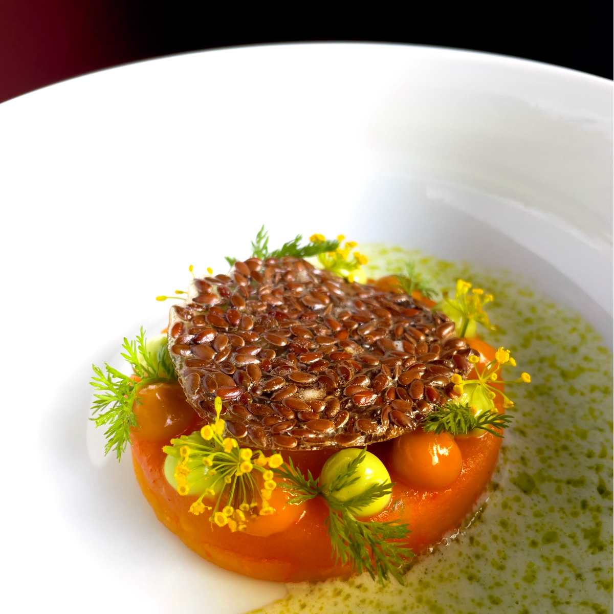 Butternut squash with gochujang / sea buckthorn / sheep's milk / yarrow*.