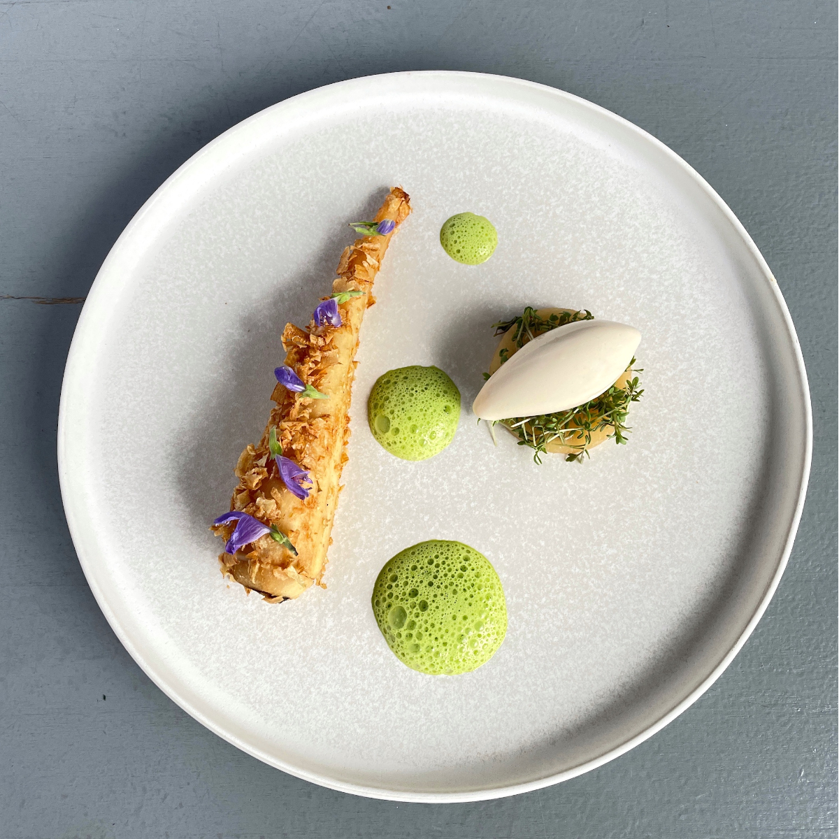 Parsnip with smoked yeast / quince / chervil / sunflower seeds / cornel cherries*.