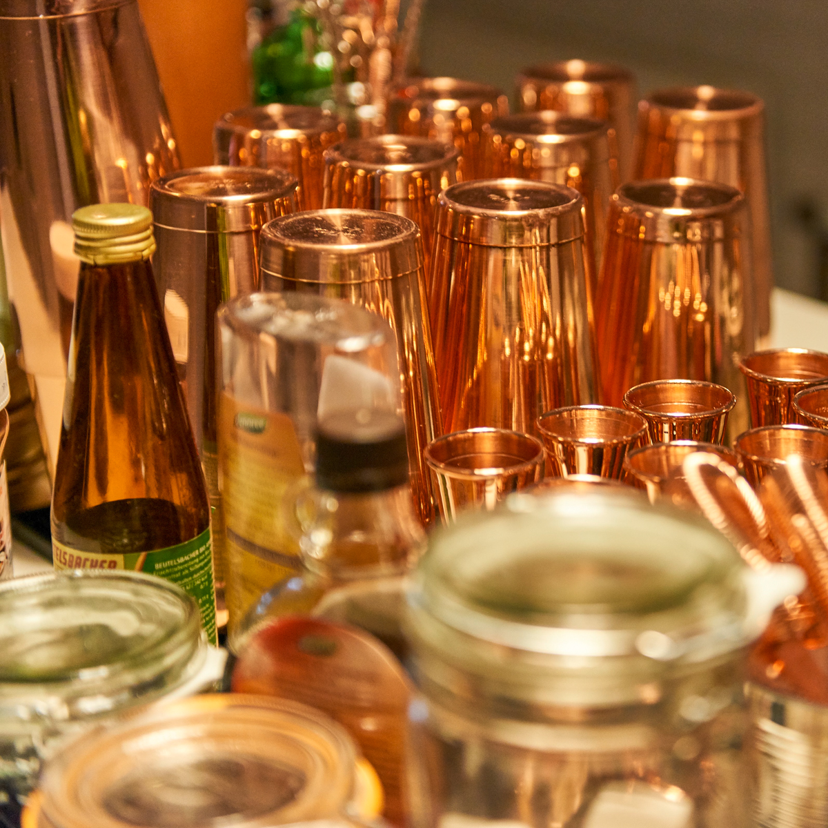 Instead of the usual counter as a barrier between bartender and guests, the team mixes at a kitchen block. Instead of a cocktail lounge, chat and drink happen at the wood-scoured tables that could just as easily be in a country house parlour. The lovely rooms are decorated with bright tiles, nostalgic kitchen utensils, vintage cookers and corresponding cupboards. Inside are bar utensils, cocktail books and many a liquor rarity.