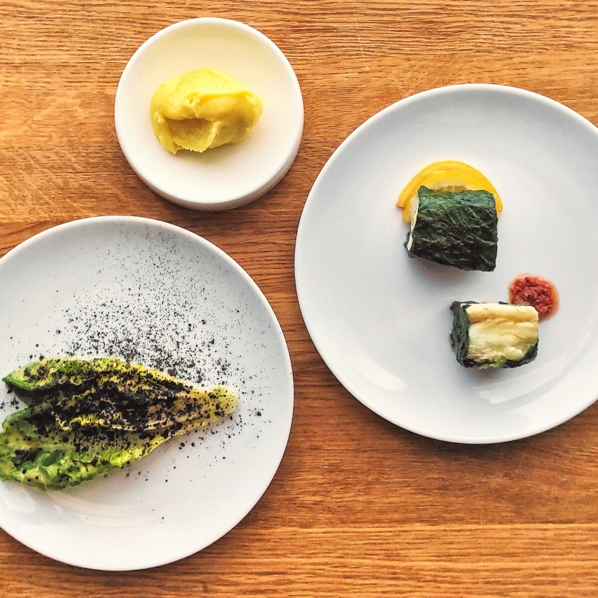 We convince ourselves of this right at the beginning with a selection of starters. We enjoy the classic stracciatella cheese with wild broccoli, salt lemon and bread crisps, and a delicious Vitello Tonnato (interpreted a little playfully with parsley dust). We also particularly like the romaine lettuce, which may not look like much but tastes all the more unusual and delicious for being lightly smoked.