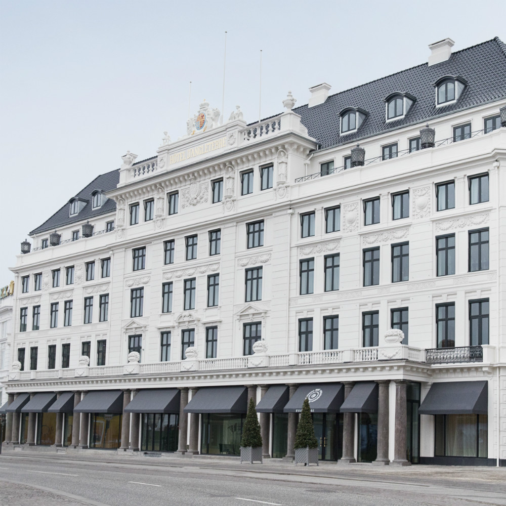 D’anglerre is a majestic hotel in the center of Copenhagen. The hotel is more than 250 years old but recently it has undergone a total renovation of the facade and the inside of the building. The new style of the hotel is contemporary classic. This breathtaking hotel will make you feel like a queen or a king – for sure. Anyone worth a title – pop star, politician, head of state is staying at D’angleterre. Besides the normal rooms the hotel also has a Royal Suite, featuring a living space of up to 250 square meters at the prime suite on top of the hotel.