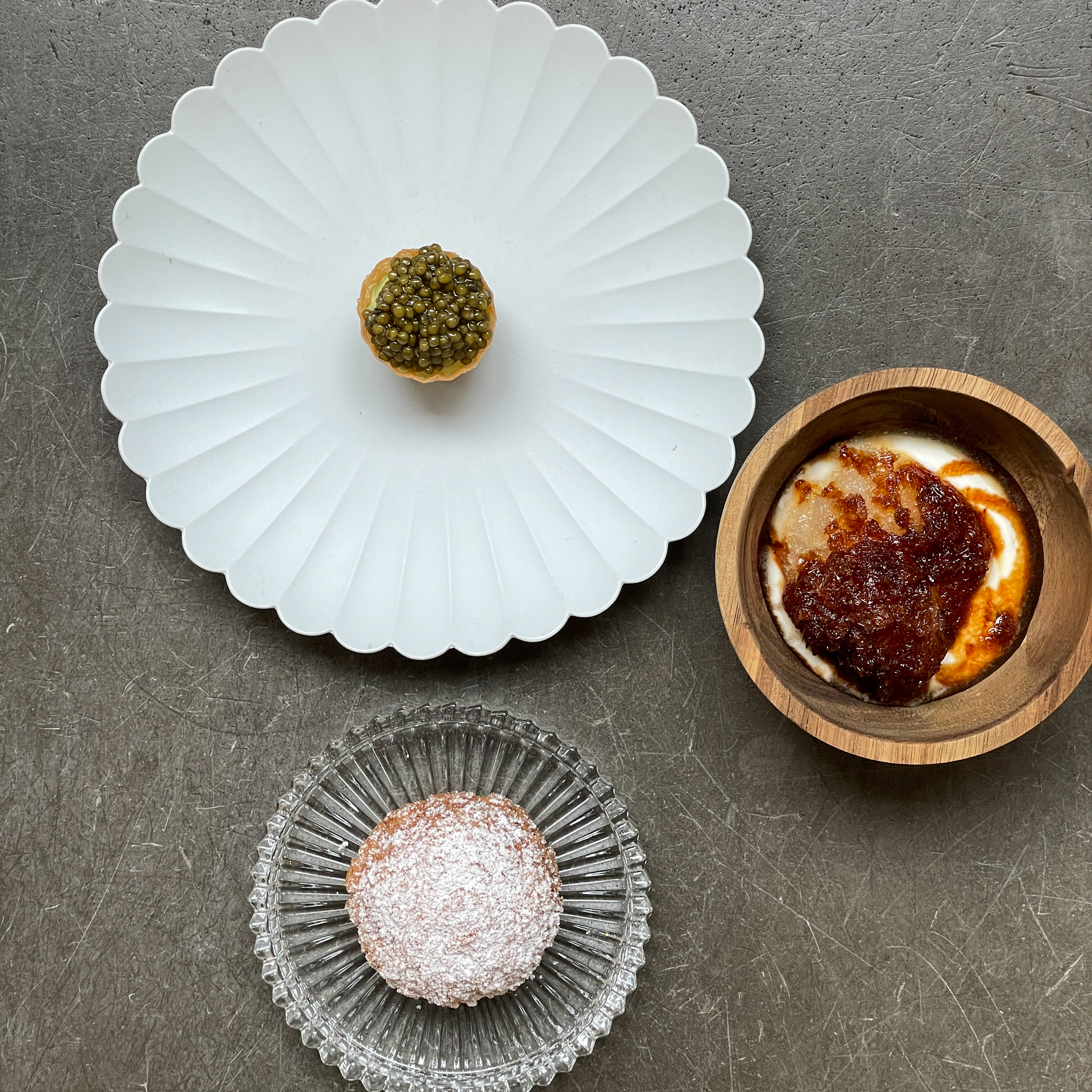 At the end of this round trip, a dessert in a class of its own awaits us. A crustat of sorrel ice cream and caviar. Accompanied by yoghurt mousse with elderflower granite and malt beer syrup. The Sauvignon Blanc from the Loire Valley combines the best of two dessert worlds, sweetness and acidity, in a skilful interplay.