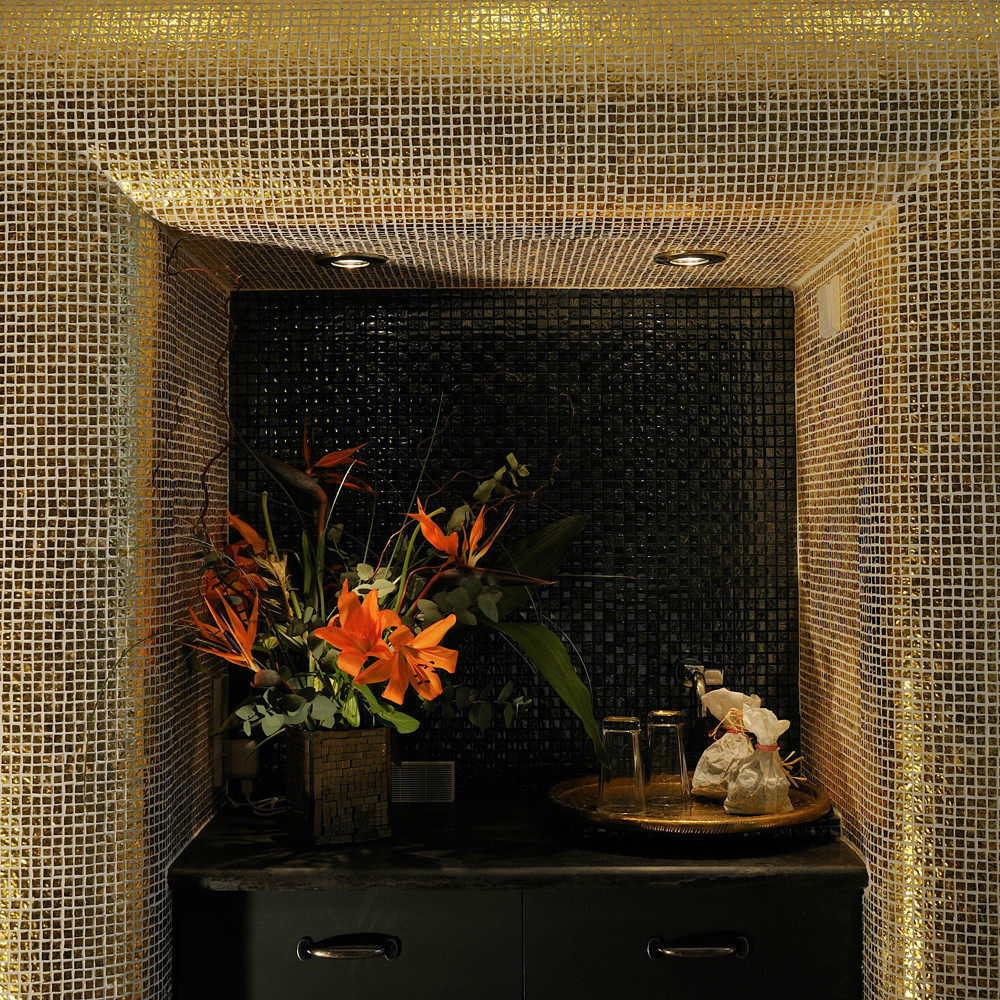 Singular gold details on the walls, lamps or the tiles show hints of the beautiful sisters' oriental roots.