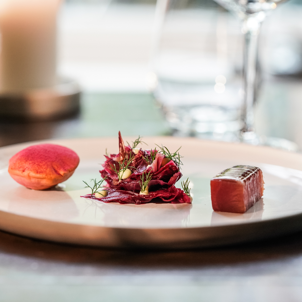 We stay with the fish for now, this time, it's a fillet of turbot with marinated beetroot and miso. Again, we indulge; yes, we swim on the wave of pleasure. Each course promises surprises and gives the familiar a pleasant new twist without imposing itself or overwhelming the taste buds. Star cuisine meets the love of home: an excellent combination.